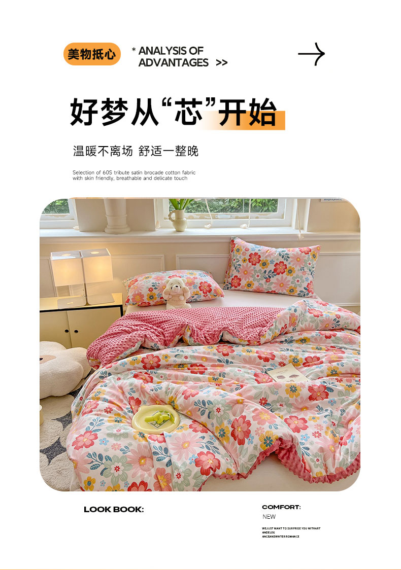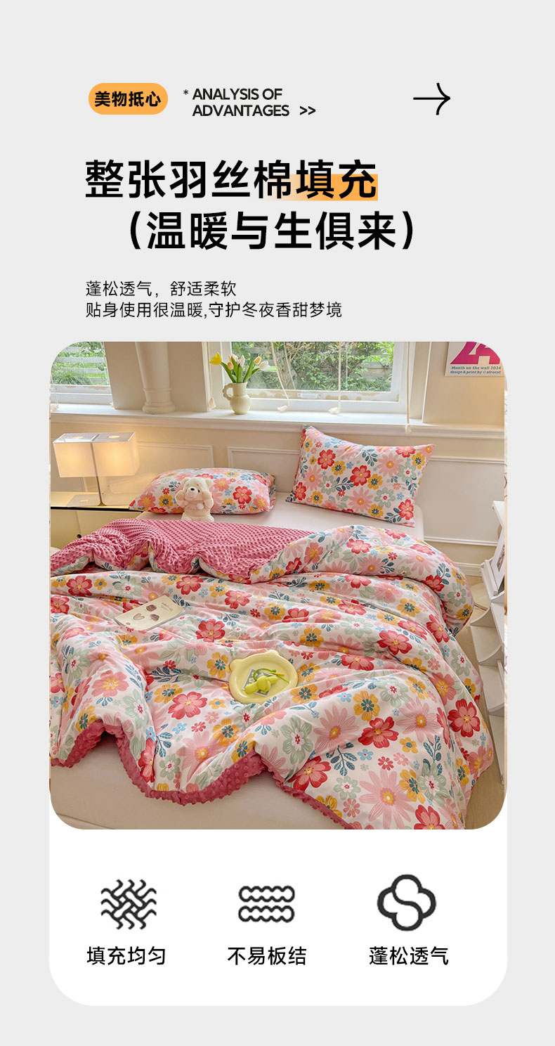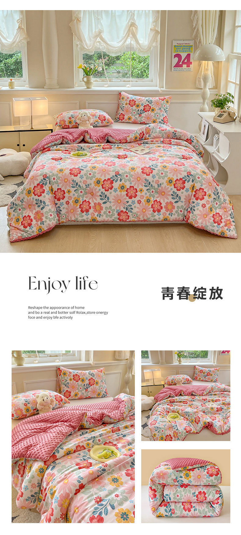 • 91家纺网 家纺一手货源 找家纺 居易简 2025新款水洗棉双层纱豆豆被加绒被子被芯直播豆豆绒被被子被芯冬被春秋被 青春绽放