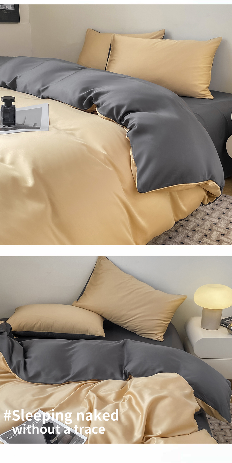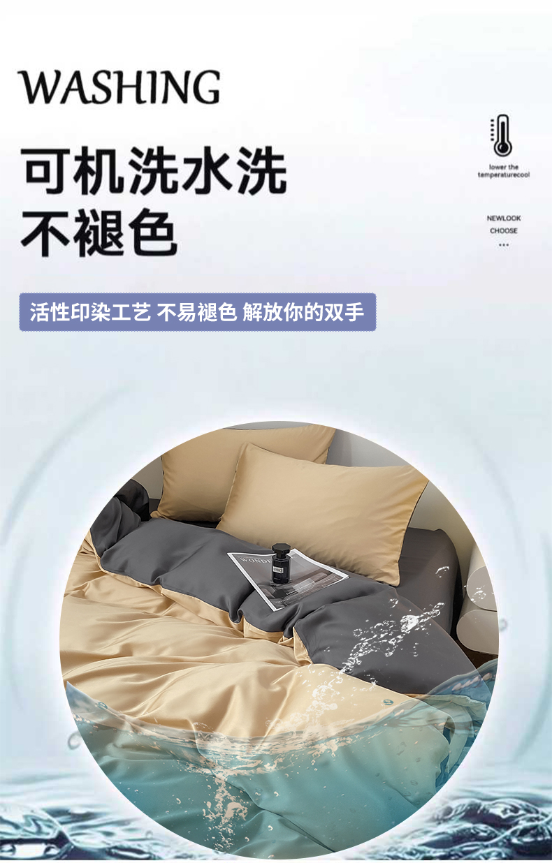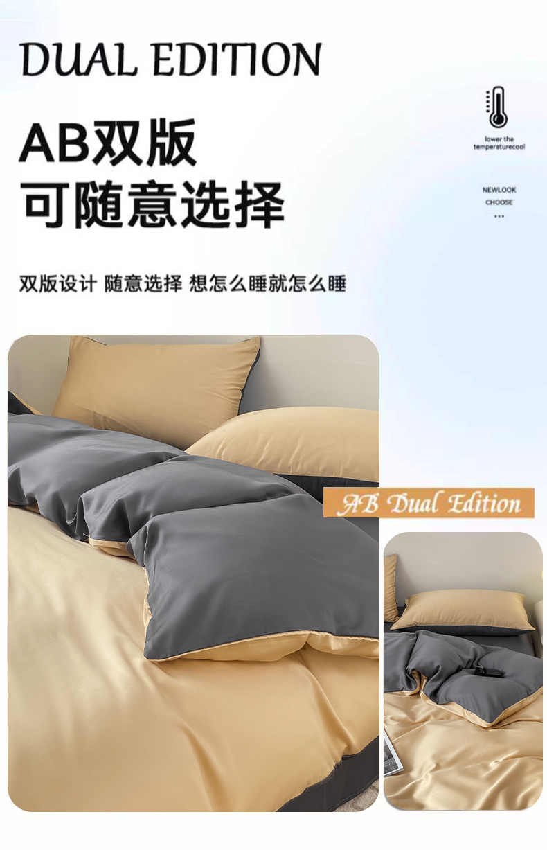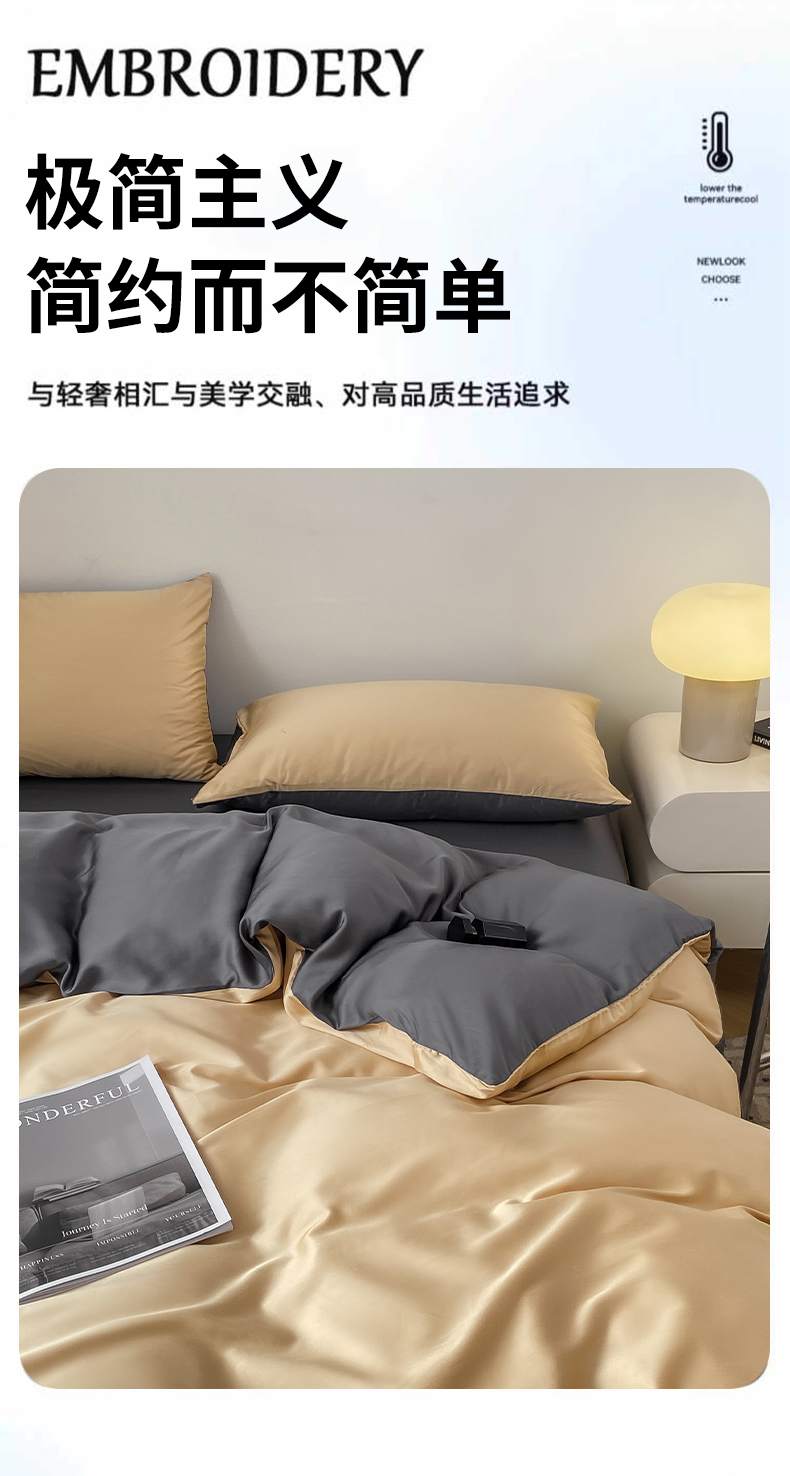 商品名称:繁花 2024新款极简风水洗真丝单被套系列-风格一 奶驼深灰