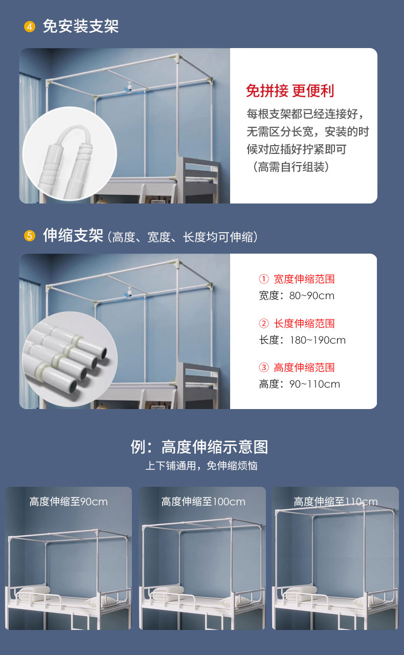 上下铺通用(无靠墙帘配全伸缩支架) | ¥100.00 |