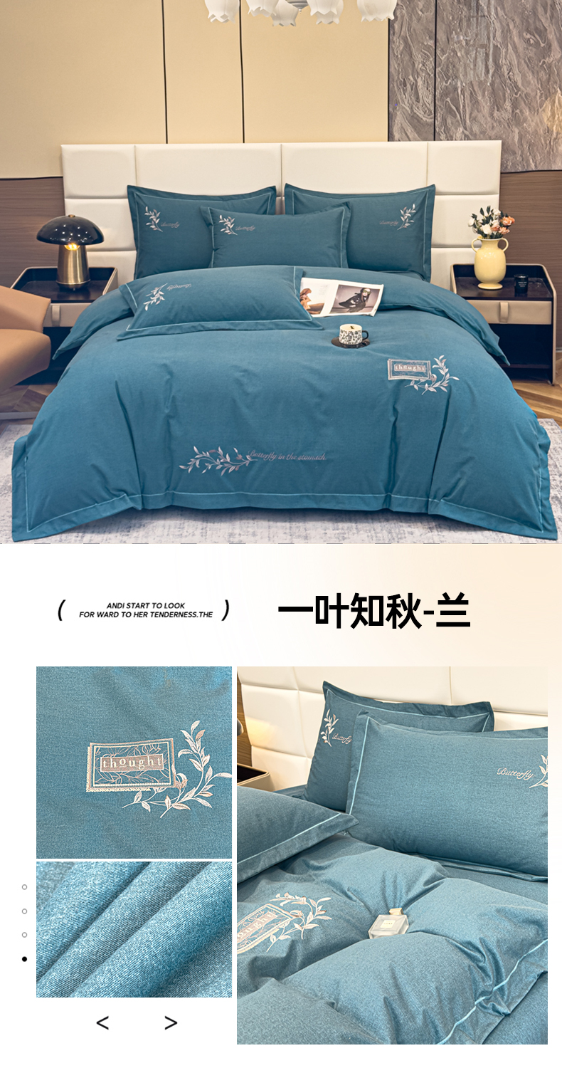 当前位置: 91家纺网 > 商品网购 > 床品套件 > 四件套 > 普通磨毛四件套 > U品汇 2024新品生态加厚长绒棉纯棉绣花全棉磨毛刺绣四件套宽边款直播 一叶知秋-兰