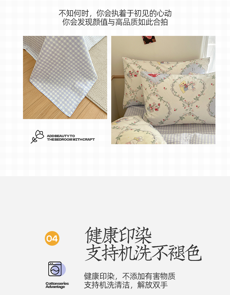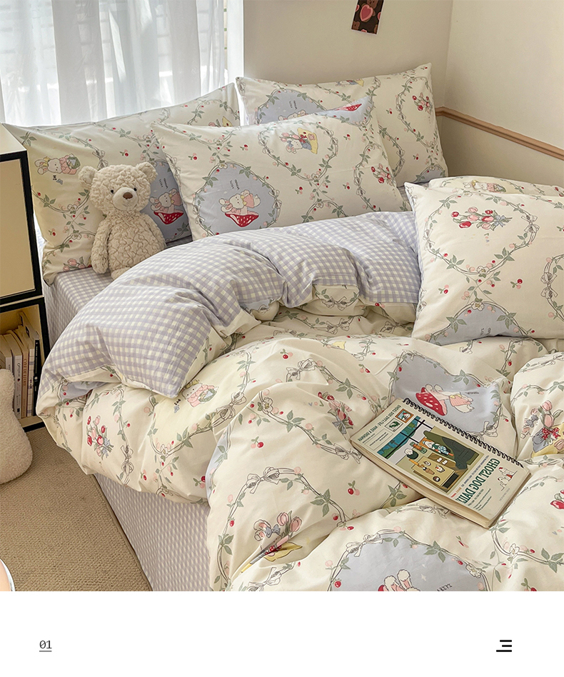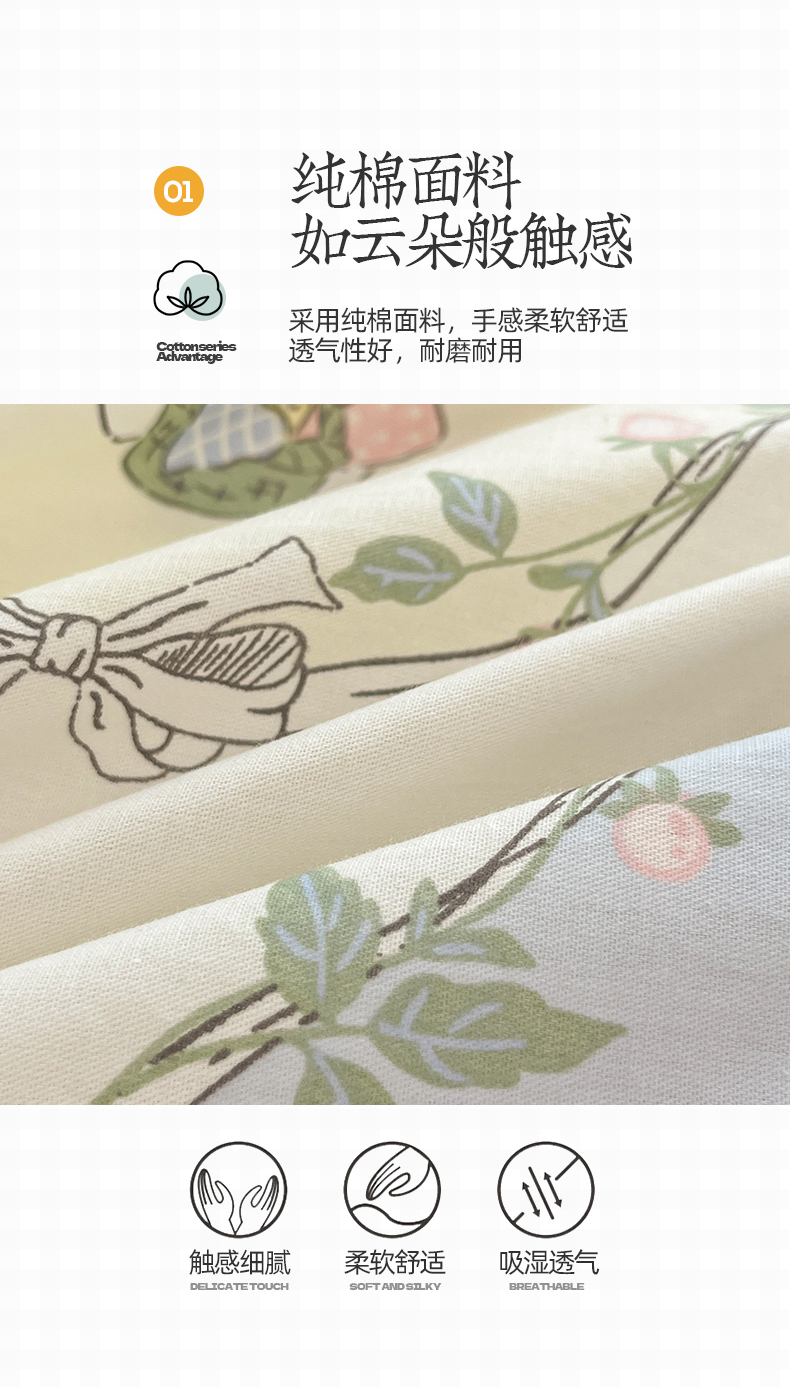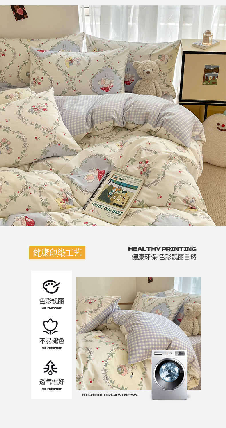 商品名称:桃子家居 2024新款纯棉小清新卡通少女13372系列四件套 棉-蘑菇兔