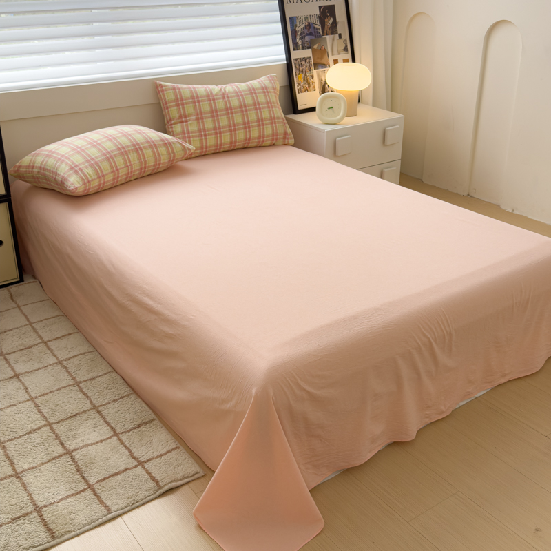 星尚家纺 2024新款A类全棉色织水洗棉三四件套系列-单床单 多芙-芭蕾粉