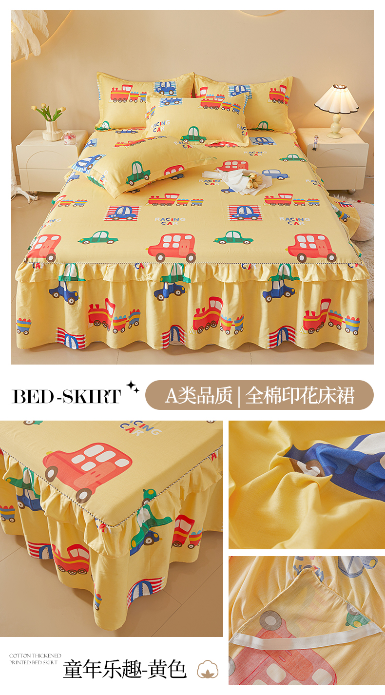 名优家纺 2024新款A类全棉印花床裙 童年乐趣-黄色
