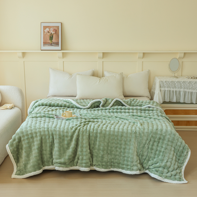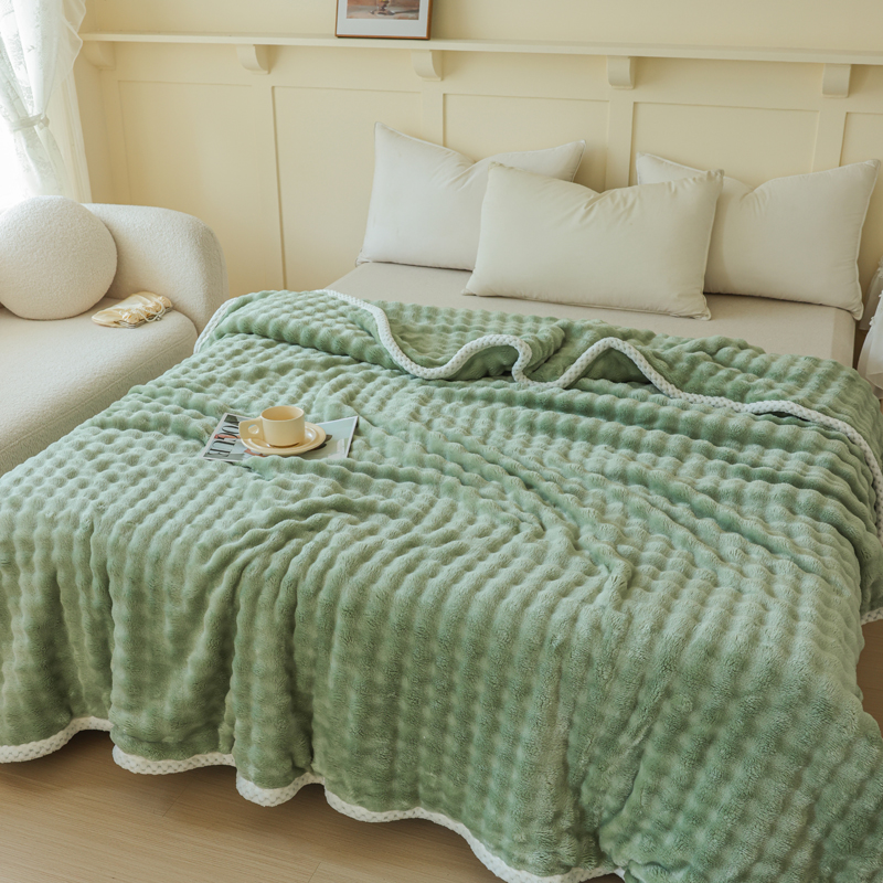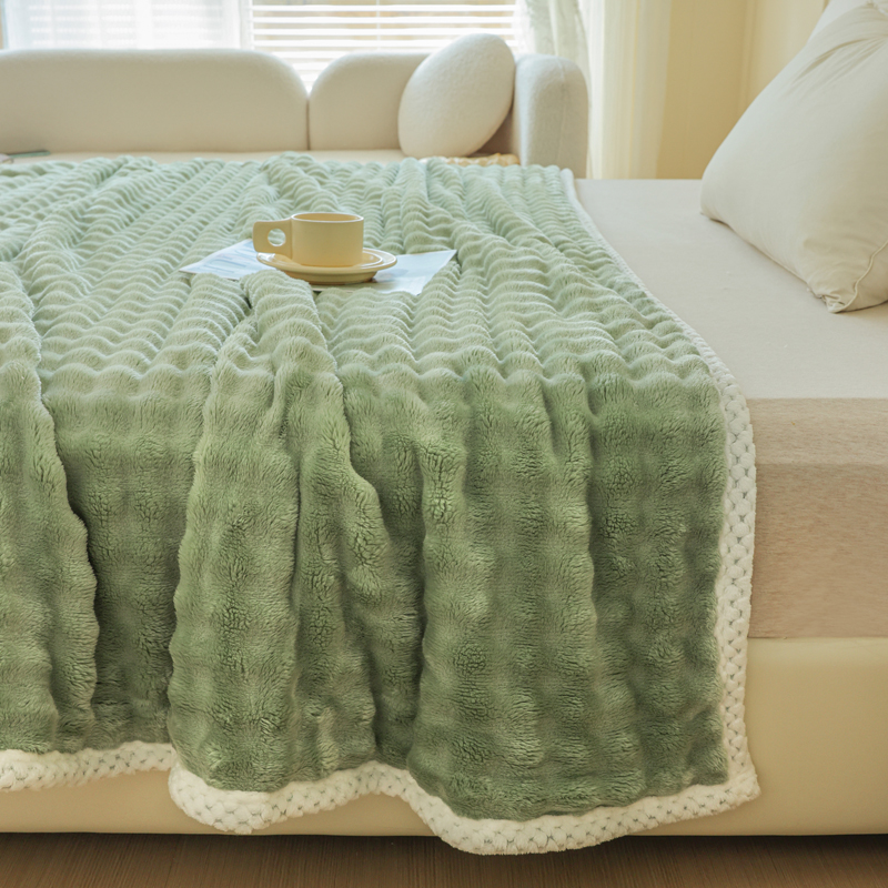 (总)蓝冰家纺 2025新款托卡斯A类母婴级兔兔绒大泡泡安抚四季毯,奶白色,奶茶色,抹茶绿,浅蓝,咖啡色,香芋紫,粉色,烟灰色,胭脂粉