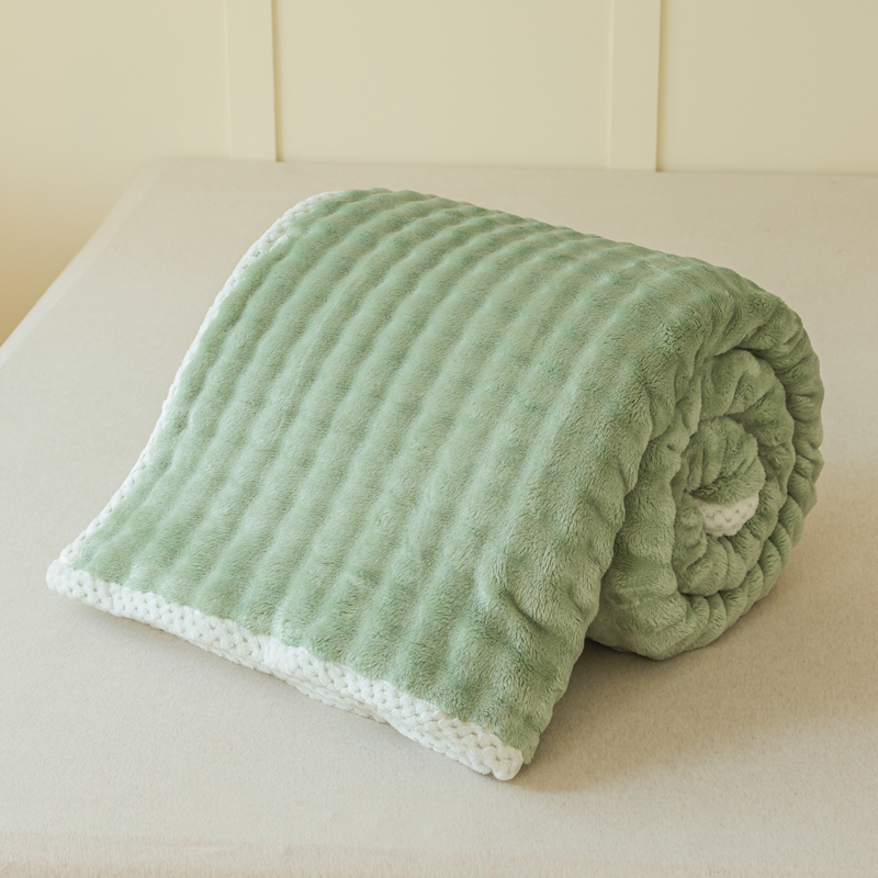 蓝冰家纺 2024新款仿兔毛绒毛毯毯子 墨绿色