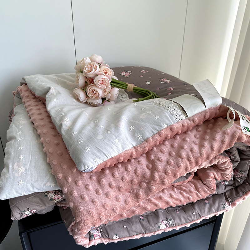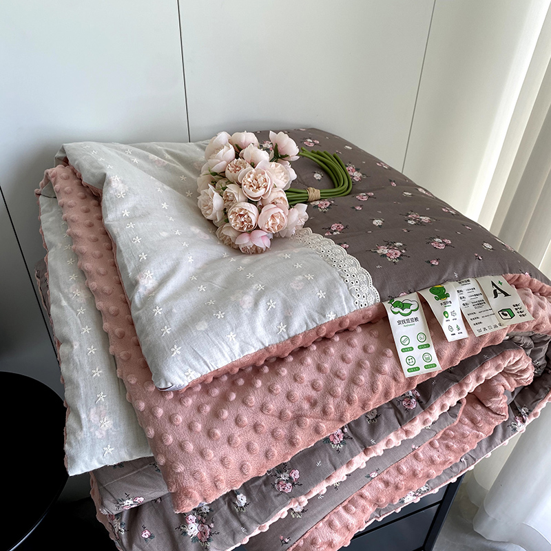 2025新款秋冬季棉加豆豆绒法式花边款豆豆被被芯 雅思