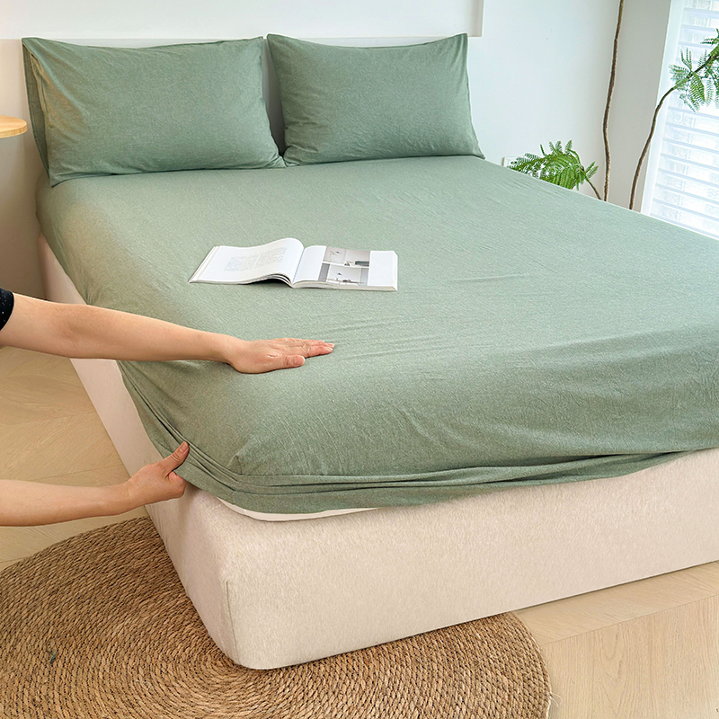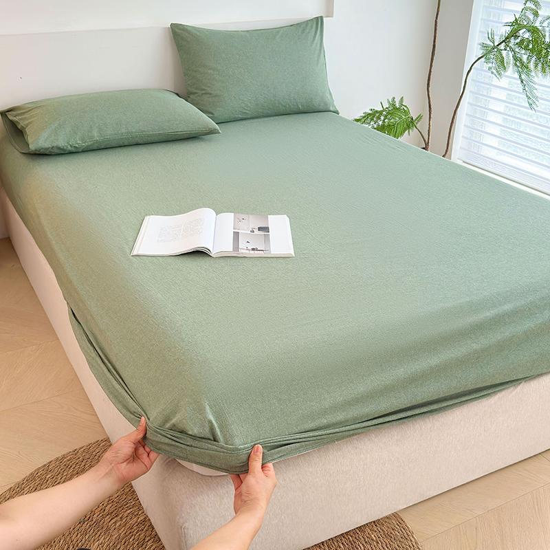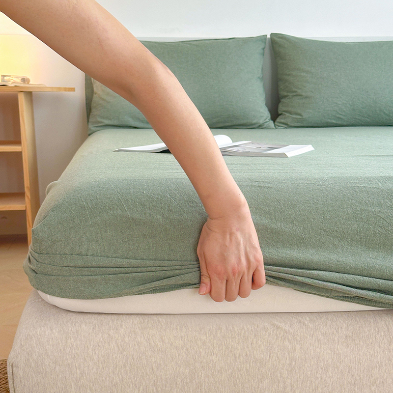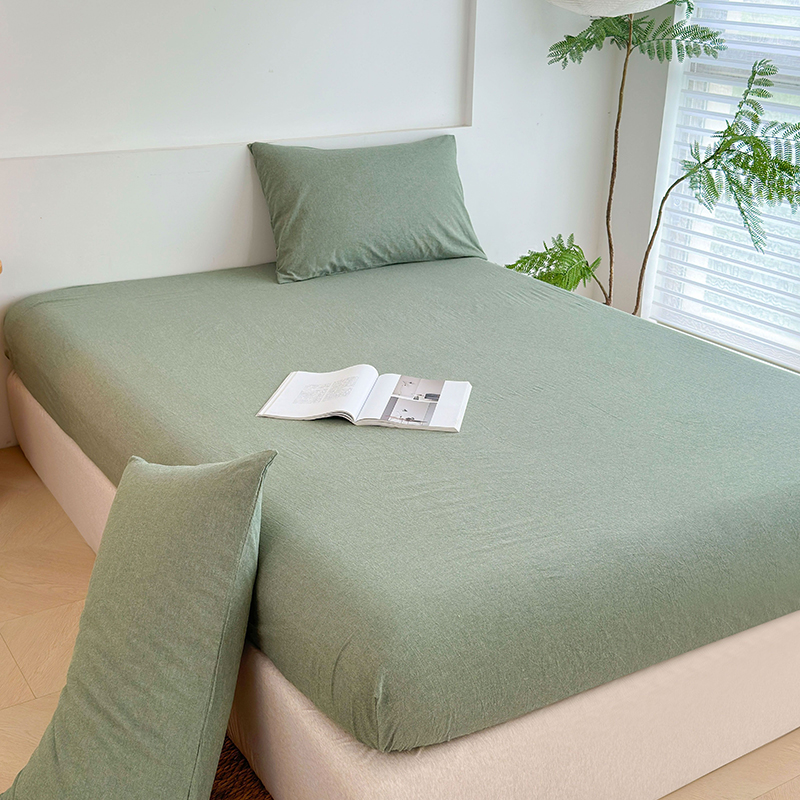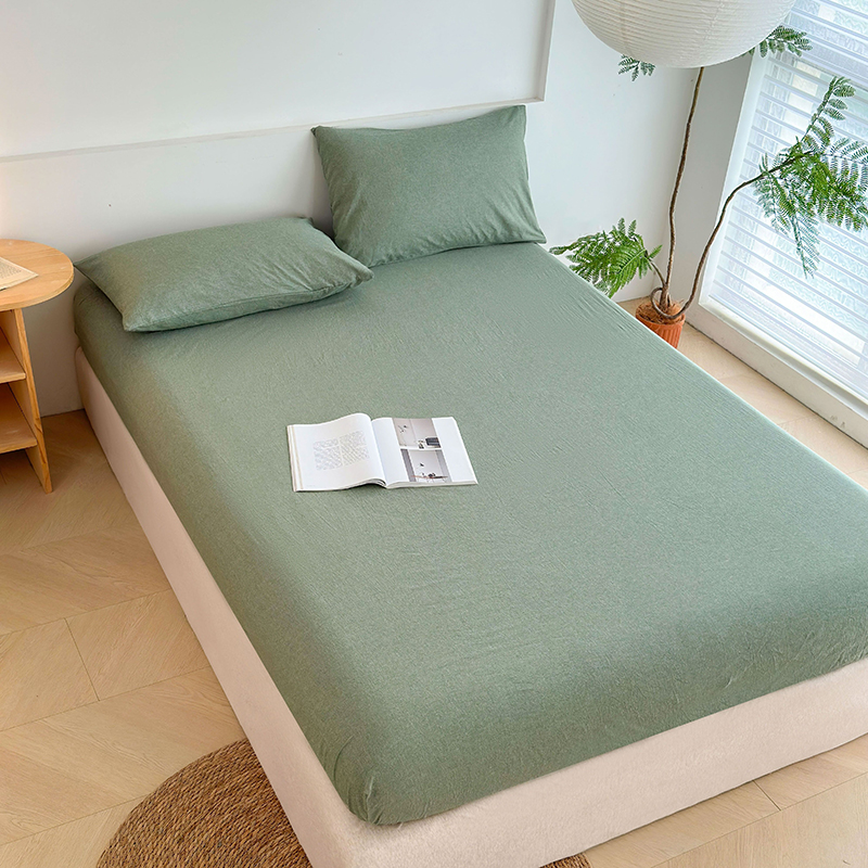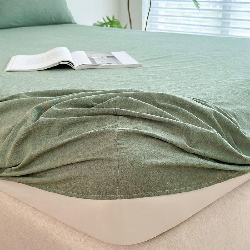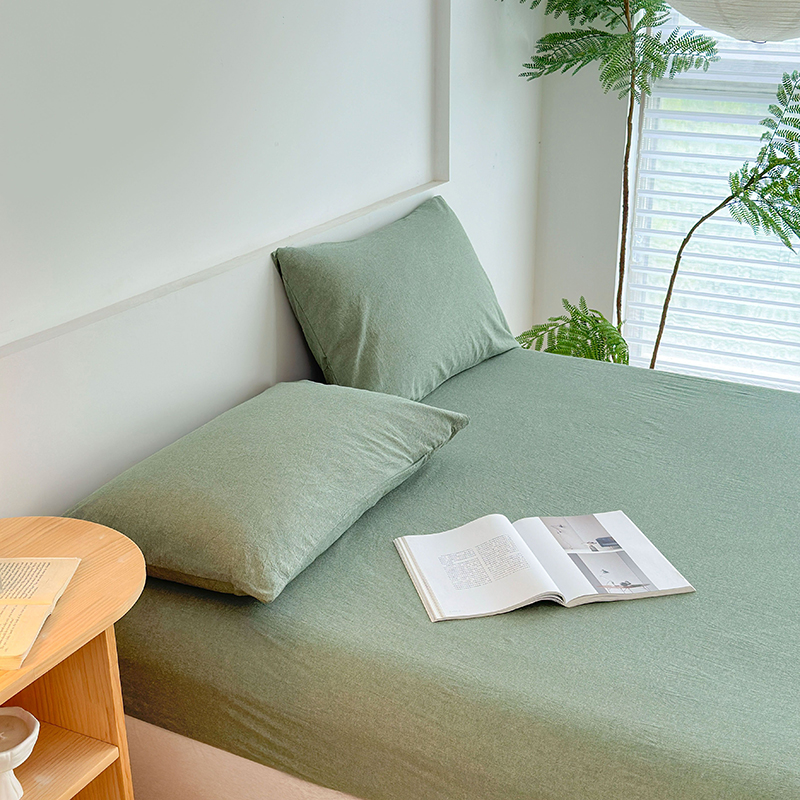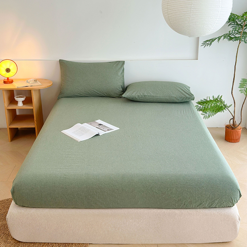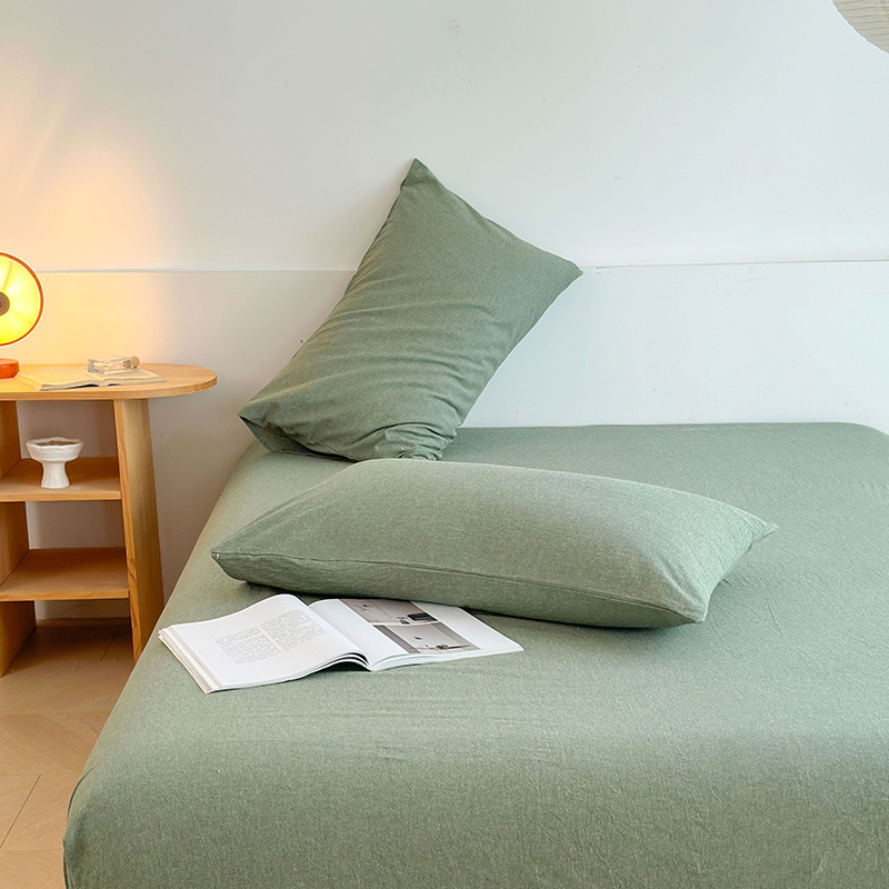 商品名称:慕莎家纺 2024新款亲肤水洗色织床笠三件套 纯色草绿