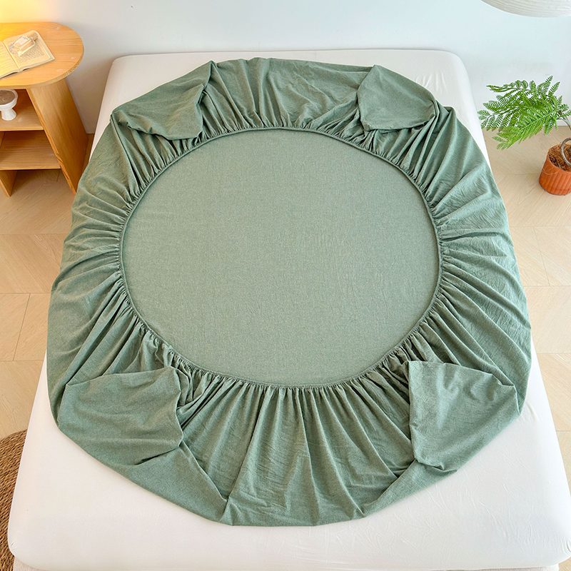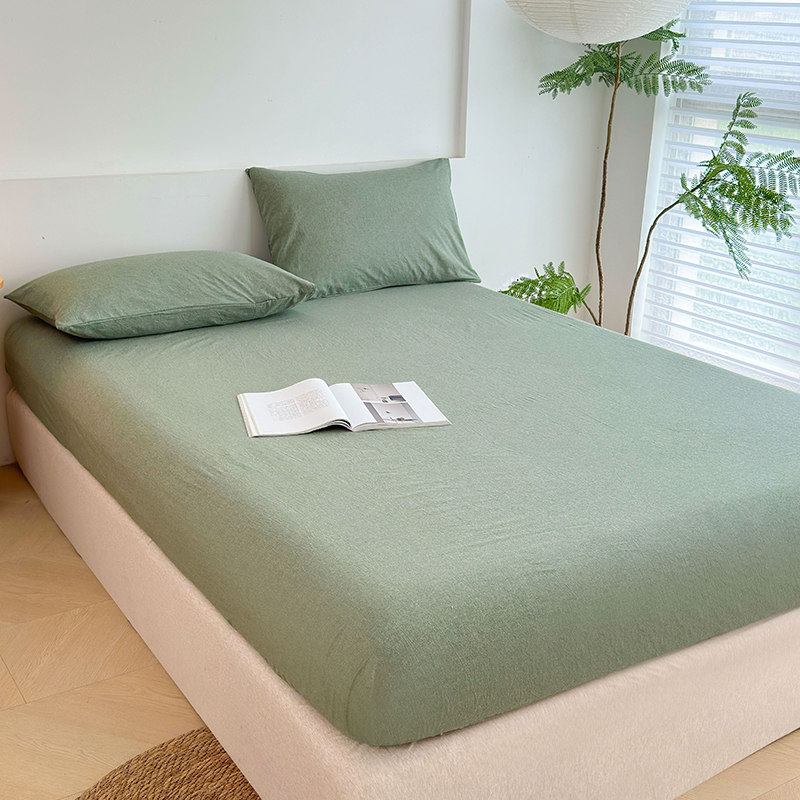 慕莎家纺 2024新款亲肤水洗色织床笠三件套 纯色草绿