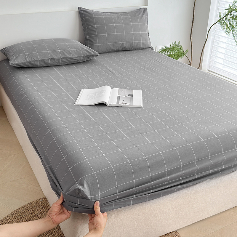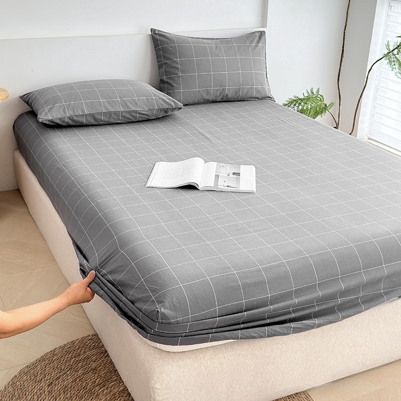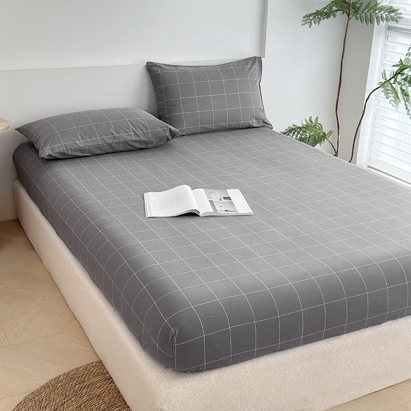 慕莎家纺 2024新款亲肤水洗色织床笠三件套 高级灰