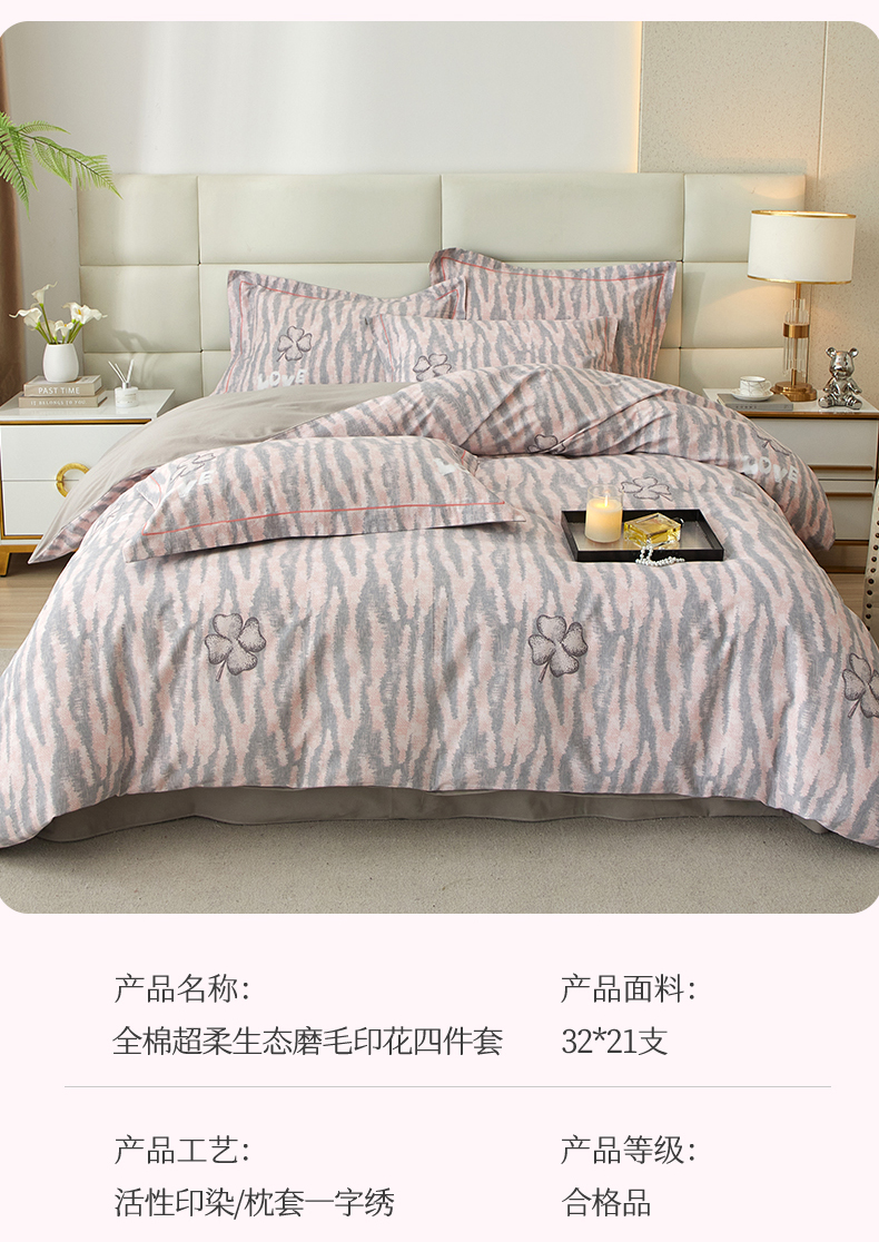 当前位置: 91家纺网 > 商品网购 > 床品套件 > 四件套 > 磨毛活性四件套 > 曼秀琳 2024新款全棉超柔生态磨毛四件套(32*21支) 花香物语