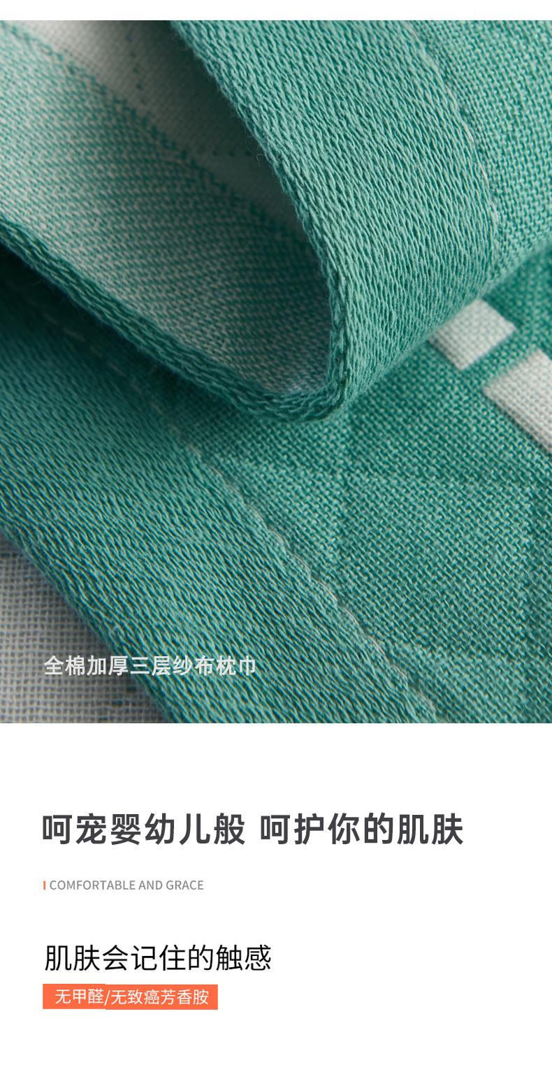 • 91家纺网 家纺一手货源 找家纺 2024新款全棉加厚三层纱布枕巾52*78cm一对 快乐小鹿绿