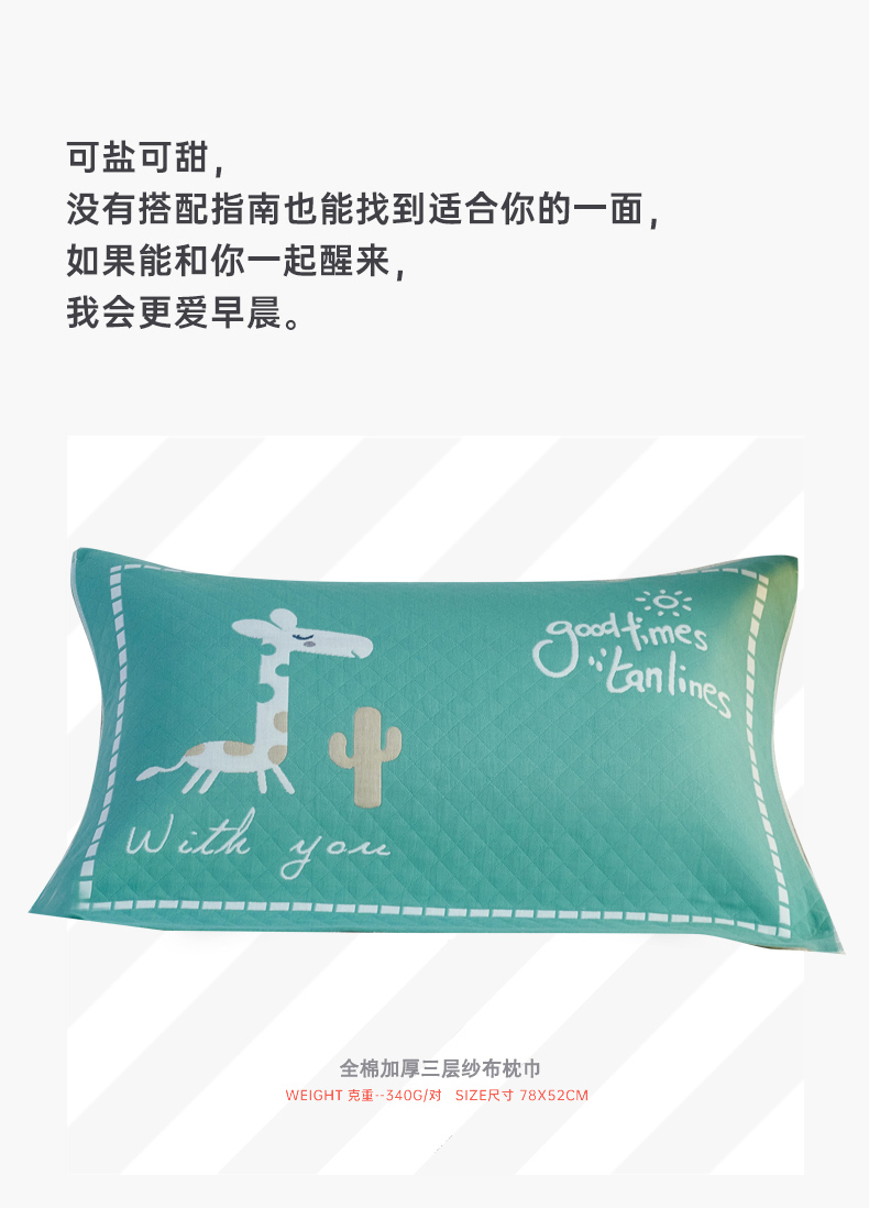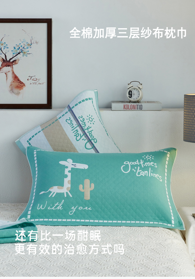 当前位置: 91家纺网 > 商品网购 > 床上用品 > 枕巾 > 2024新款全棉加厚三层纱布枕巾52*78cm一对 快乐小鹿绿
