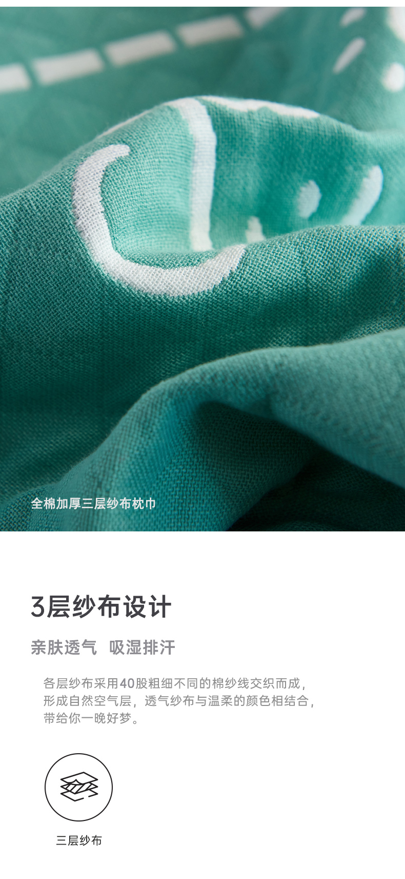 2024新款全棉加厚三层纱布枕巾52*78cm一对 快乐小鹿绿