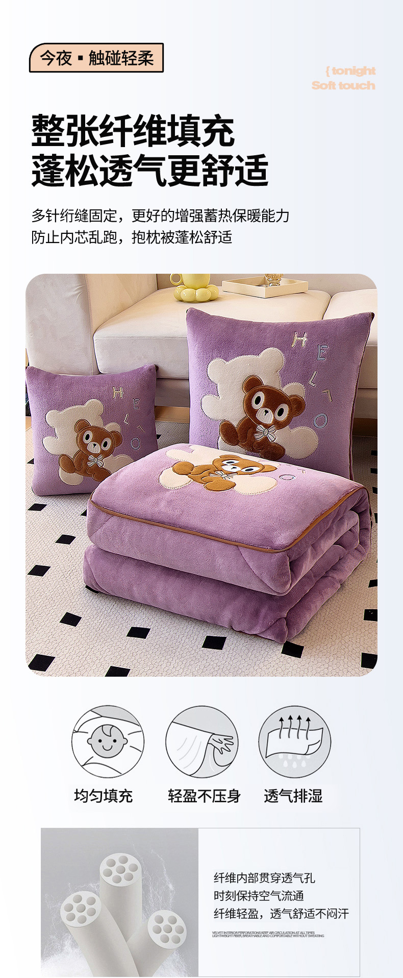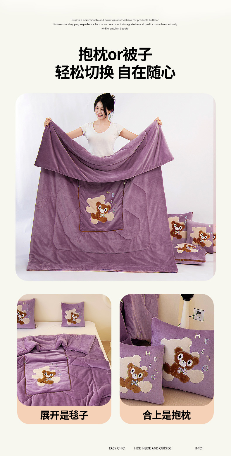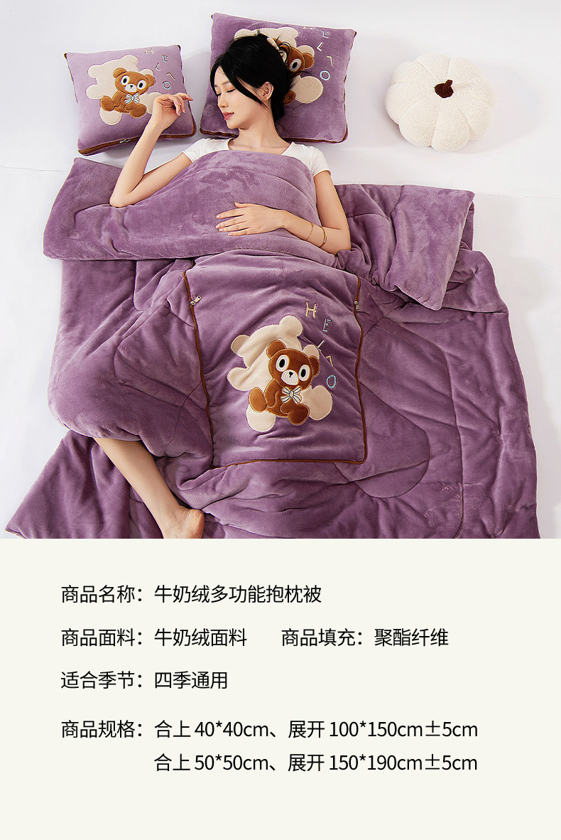 阳光依佰抱枕被 2024秋冬新款牛奶绒绅士小熊多功能抱枕被 绅士小熊-罗兰紫