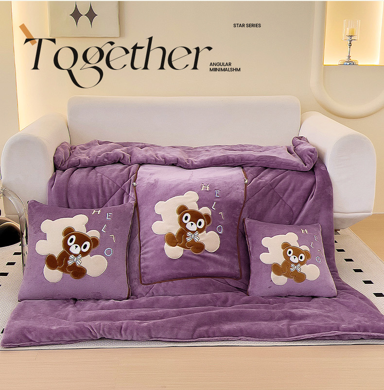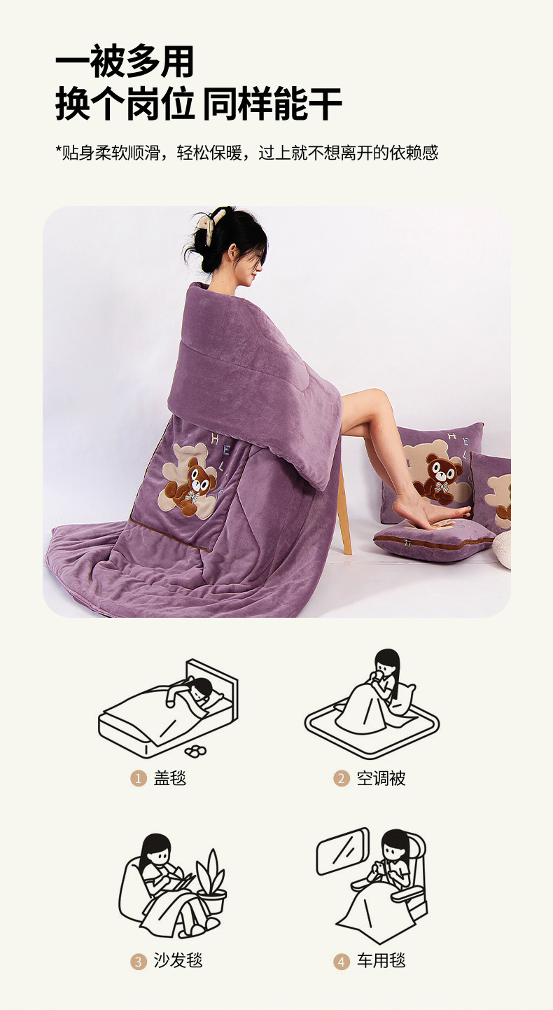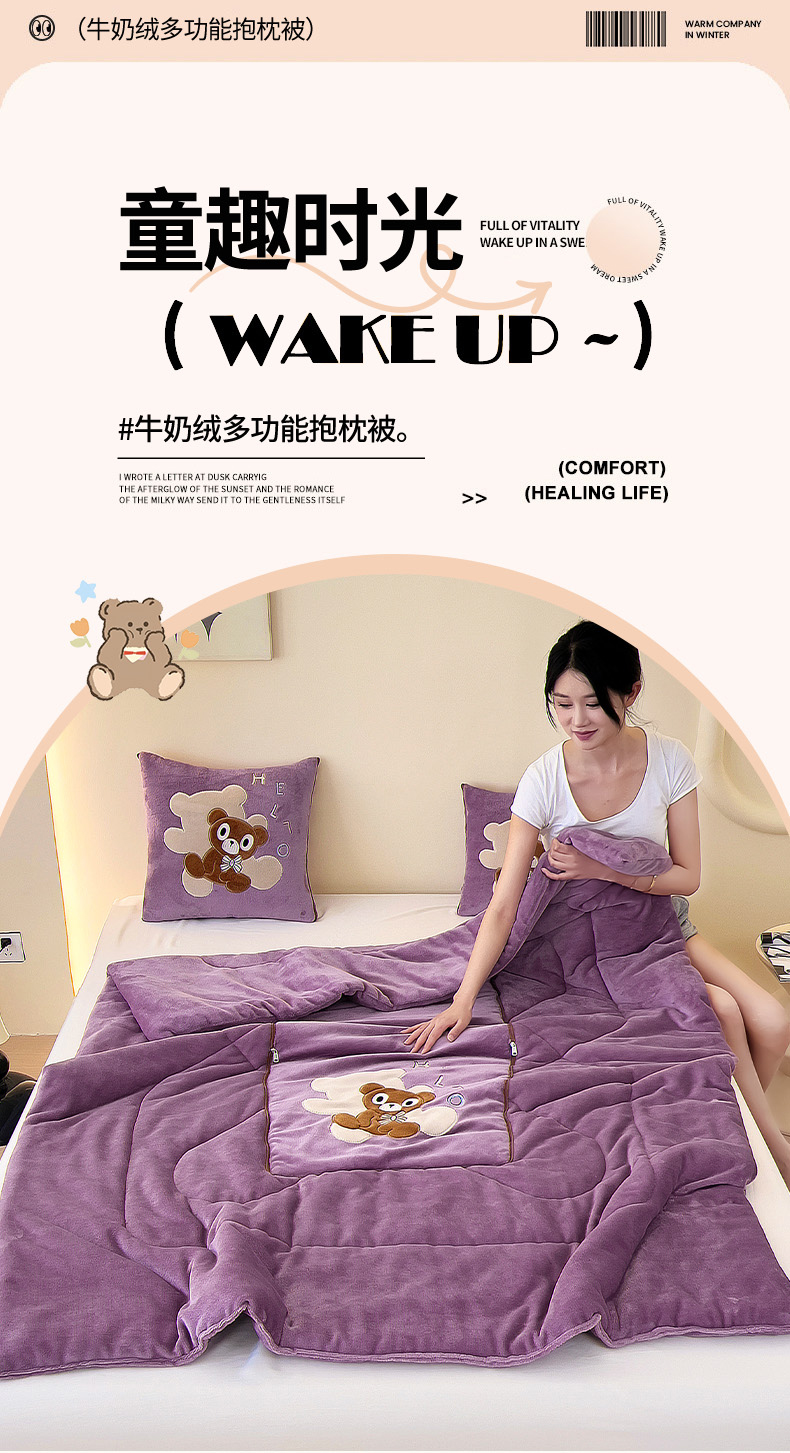 阳光依佰抱枕被 2024秋冬新款牛奶绒绅士小熊多功能抱枕被 绅士小熊-罗兰紫
