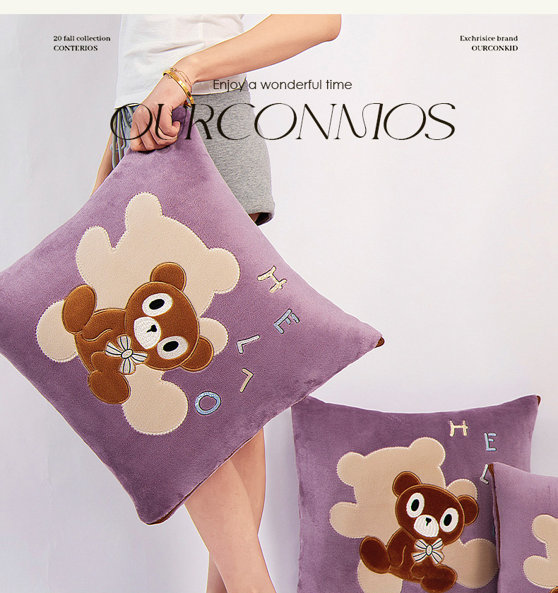 (总)阳光依佰 2024新款四季款全棉贴布绣华夫格抱枕被--元气熊系列,元气熊-冰川蓝,元气熊-橄榄绿,元气熊-奶昔灰,元气熊-青柠,元气熊-樱花粉