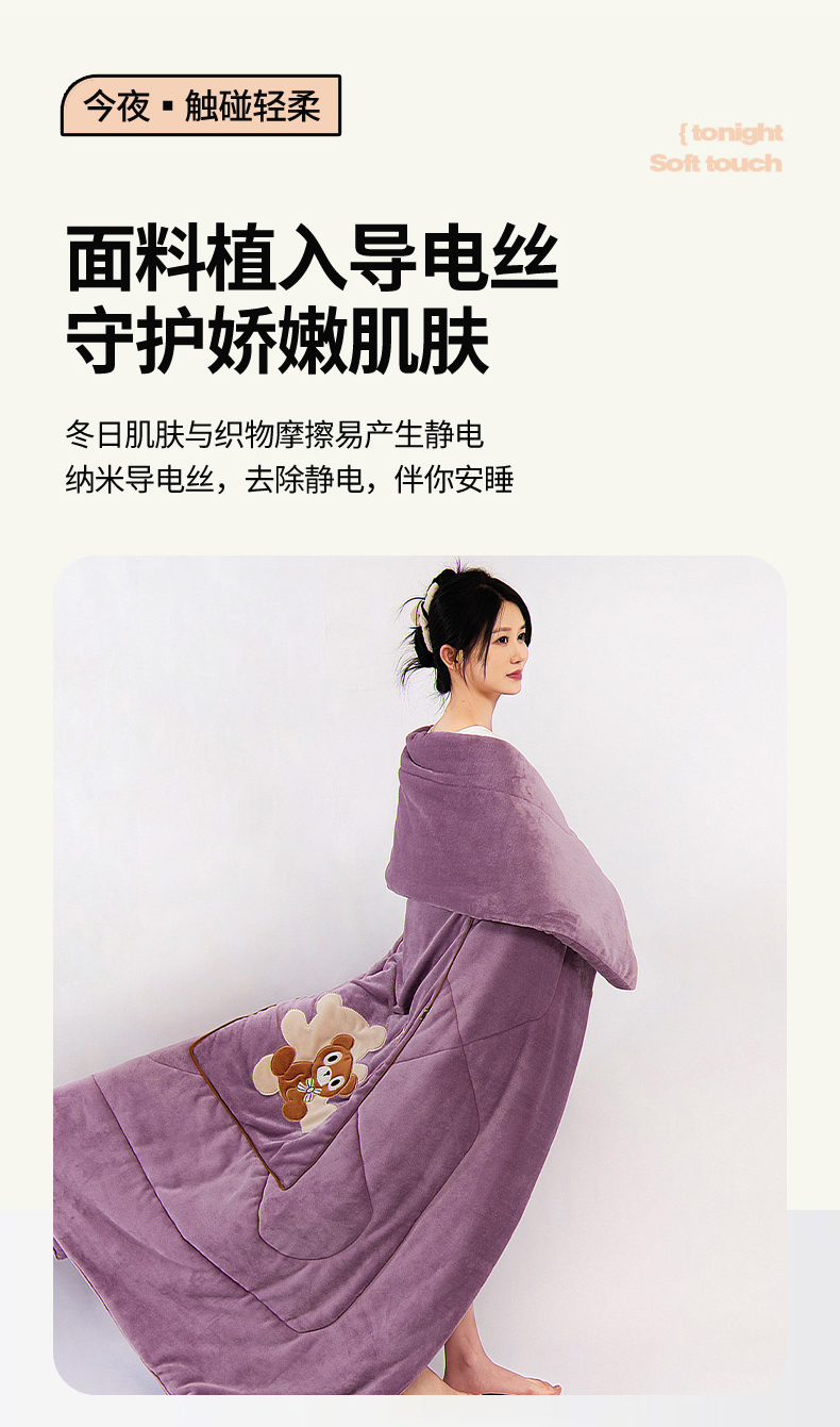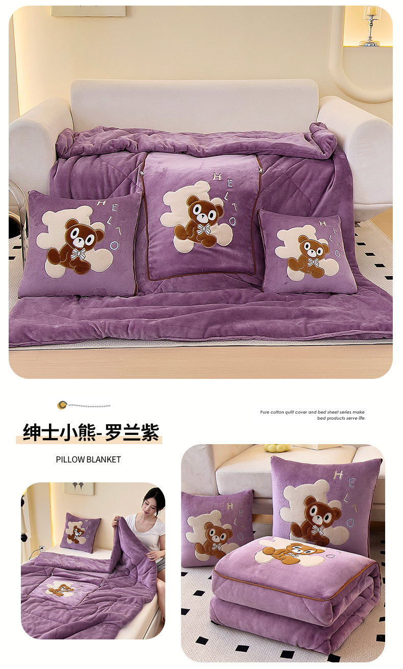 商品名称:阳光依佰抱枕被 2024秋冬新款牛奶绒绅士小熊多功能抱枕被 绅士小熊-罗兰紫