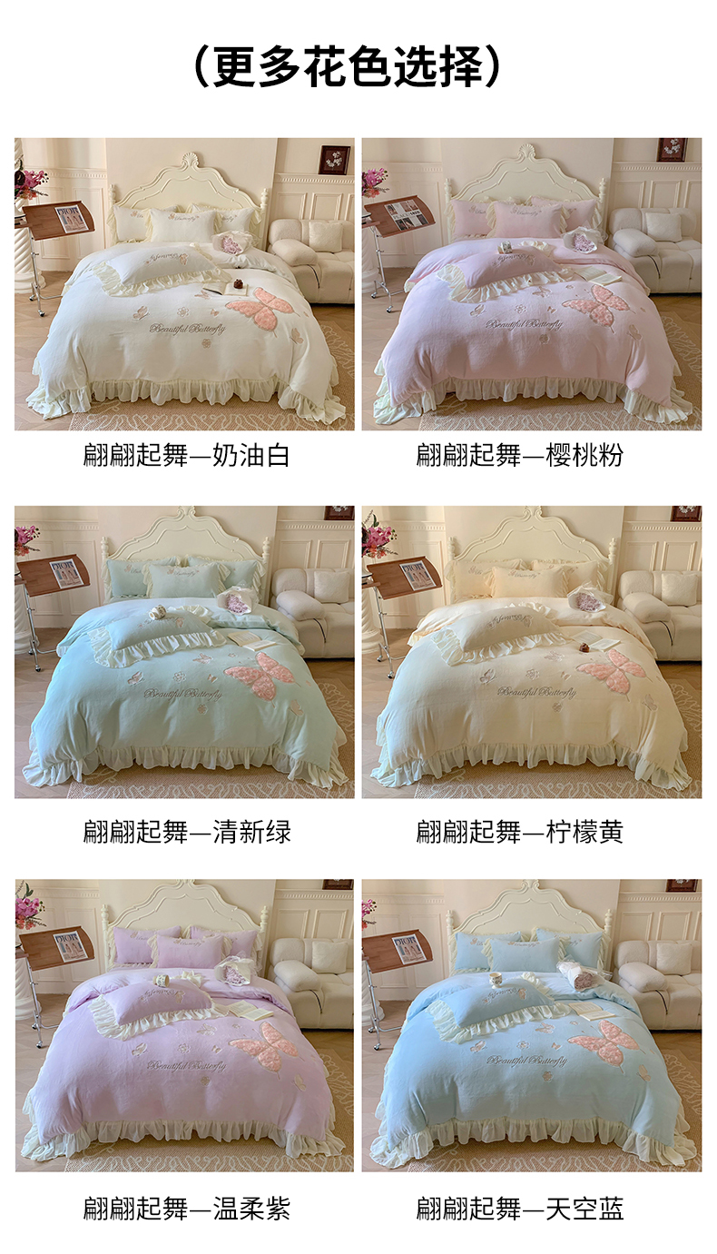 (总)富盛 2024新款水洗亲肤棉立体刺绣四件套公主风四件套-蝴蝶系列,蝴蝶-粉,蝴蝶-白,蝴蝶-黄,蝴蝶-嫩绿,蝴蝶-紫,蝴蝶-浅绿,蝴蝶-豆沙,蝴蝶-蓝
