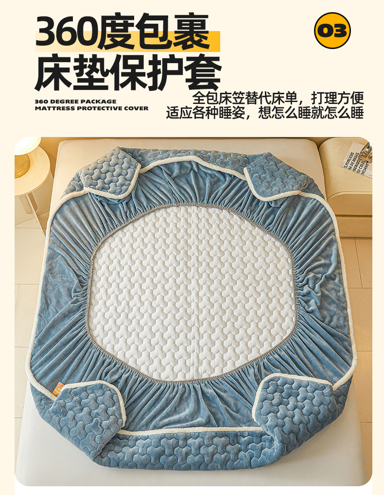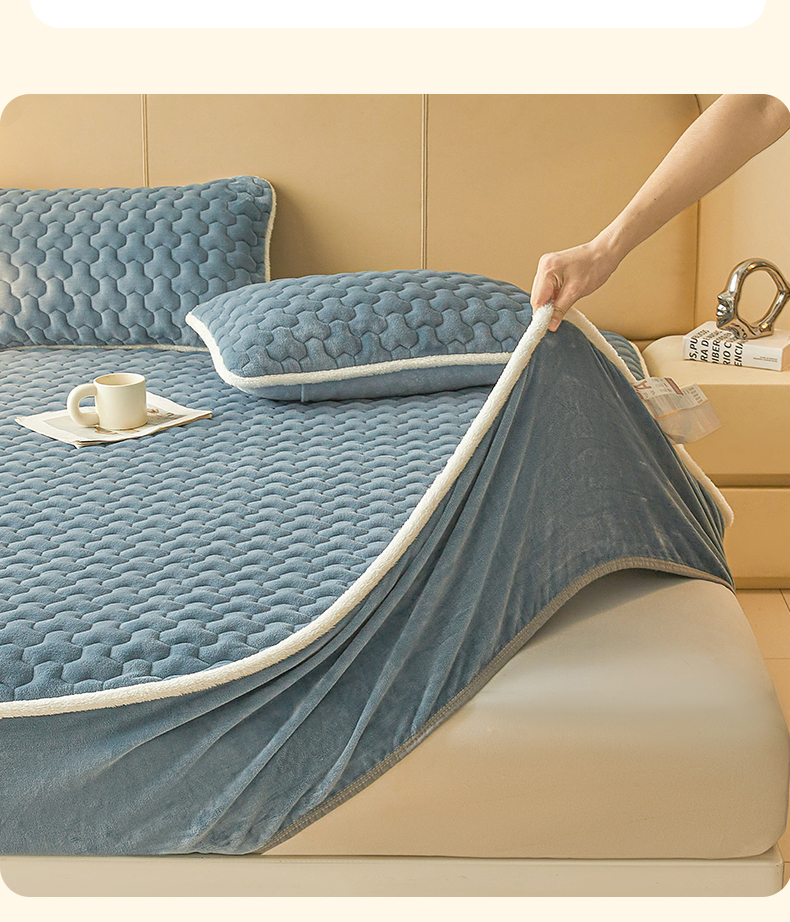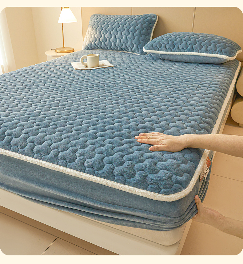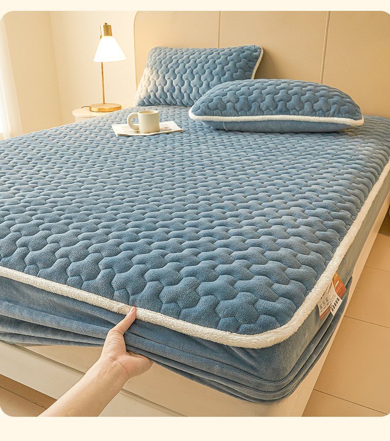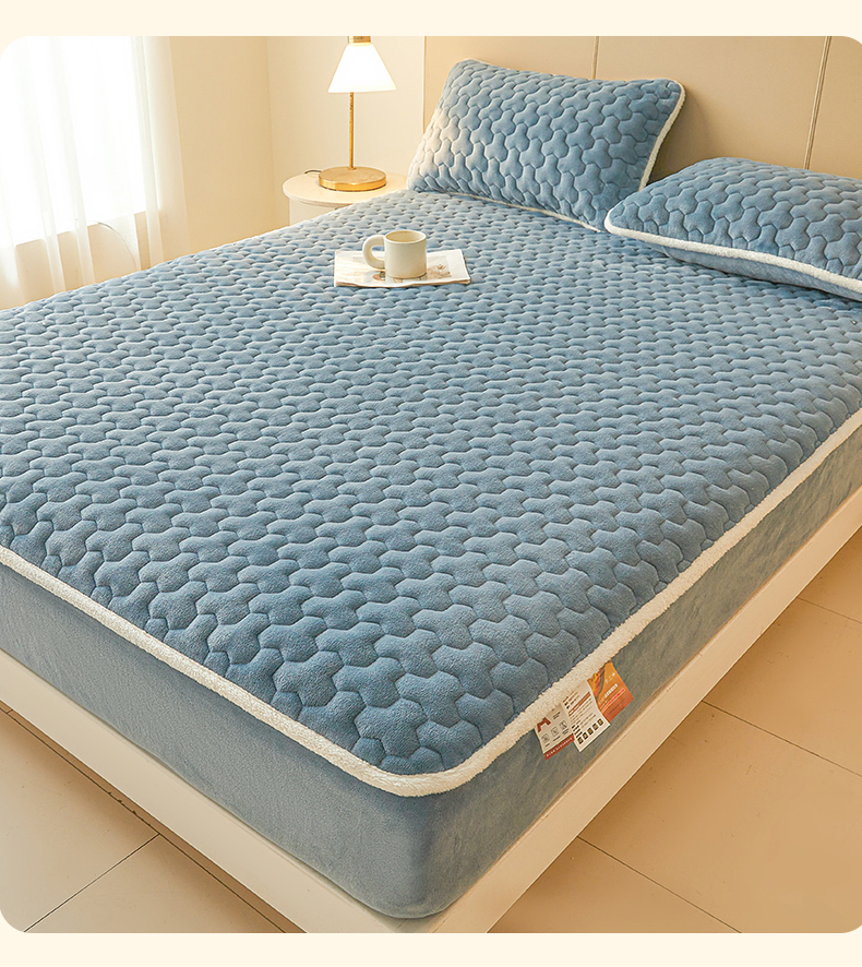 (总)雯豆家纺 2025冬季新款纯色素色牛奶绒夹棉床笠三件套保暖席梦思保护套