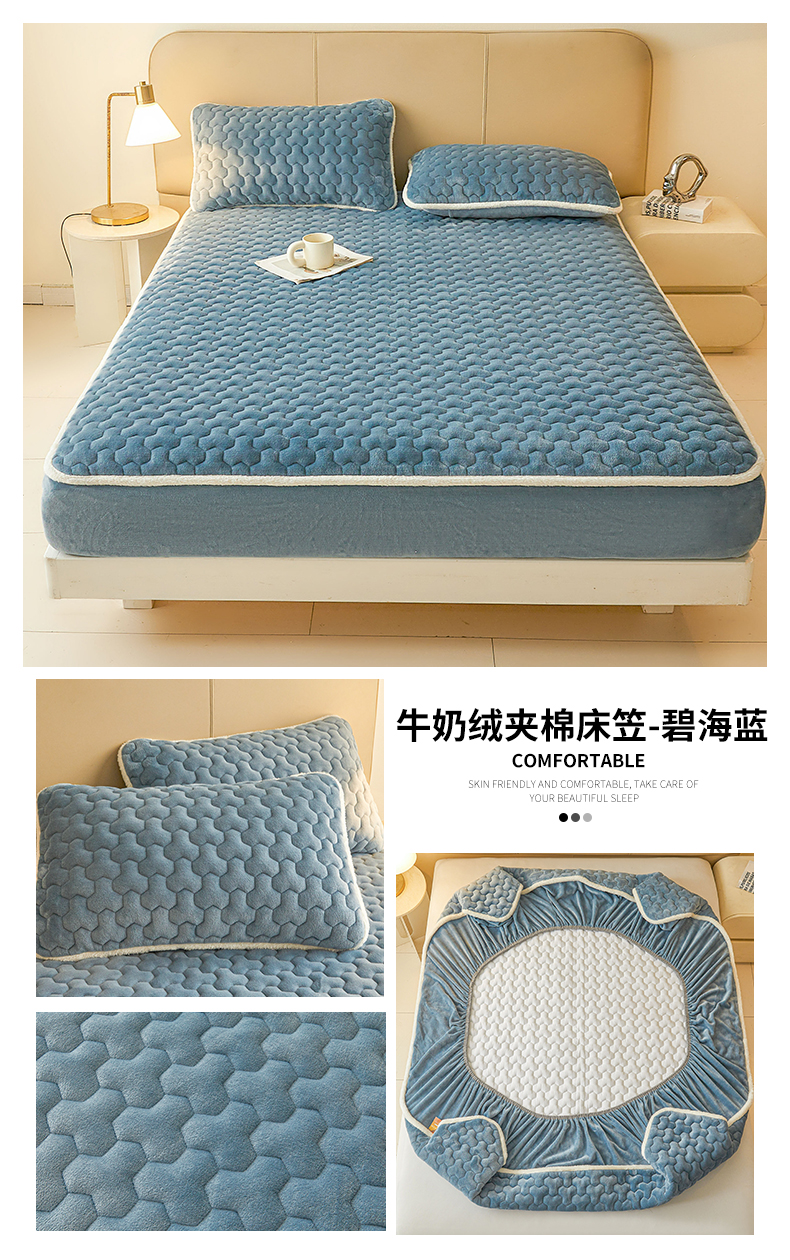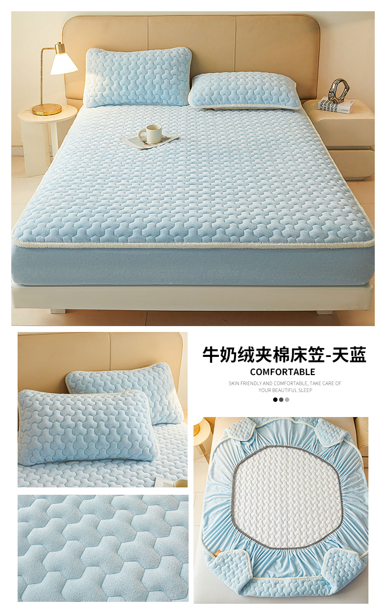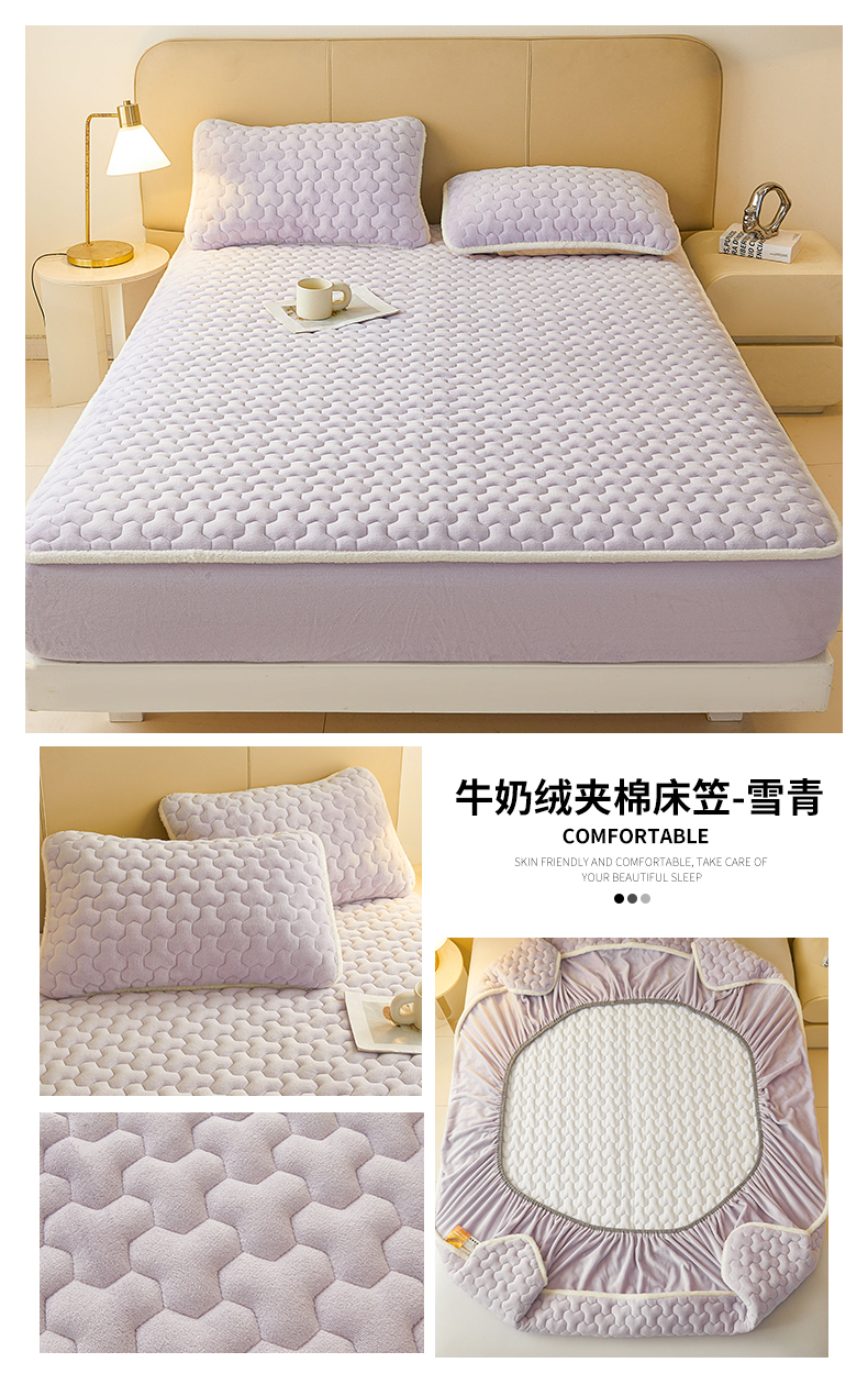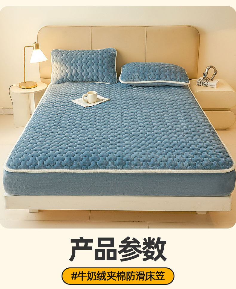 商品名称:(总)雯豆家纺 2025冬季新款纯色素色牛奶绒夹棉床笠三件套保暖席梦思保护套