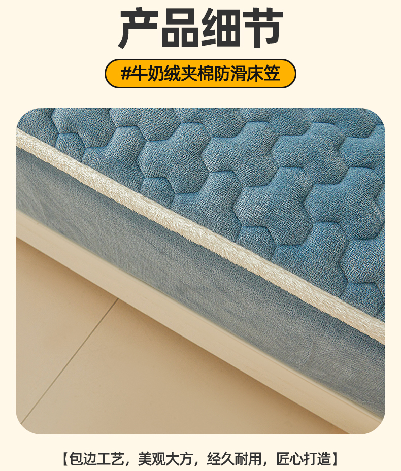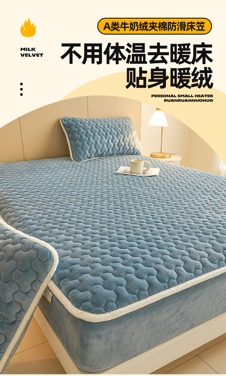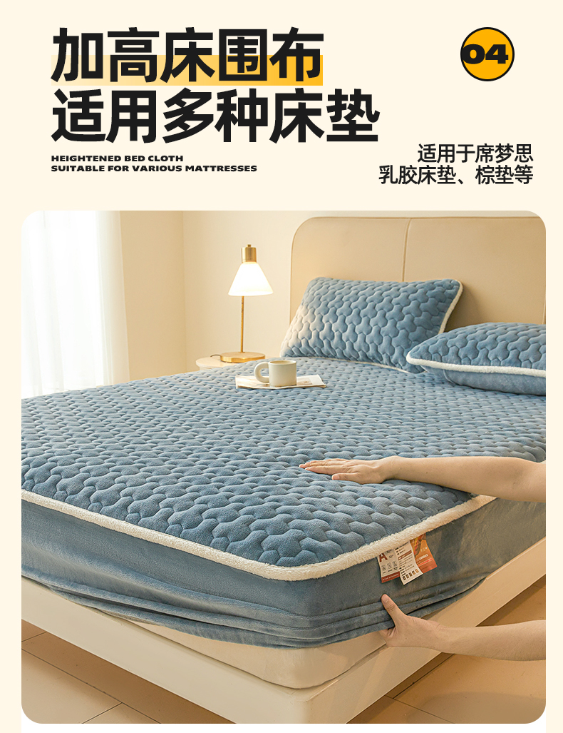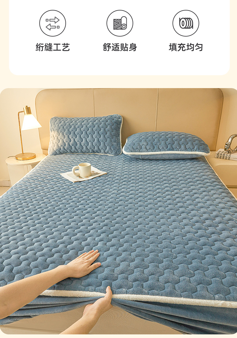 商品名称:(总)雯豆家纺 2025冬季新款纯色素色牛奶绒夹棉床笠三件套保暖席梦思保护套