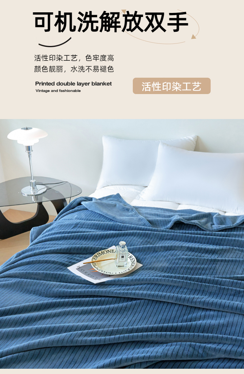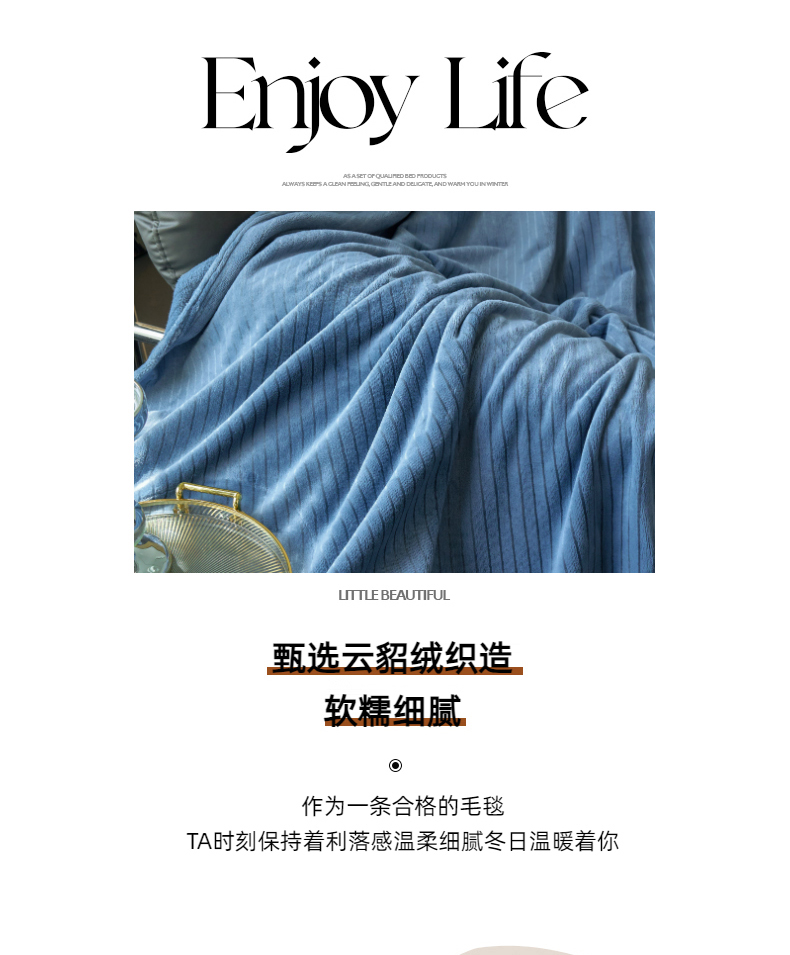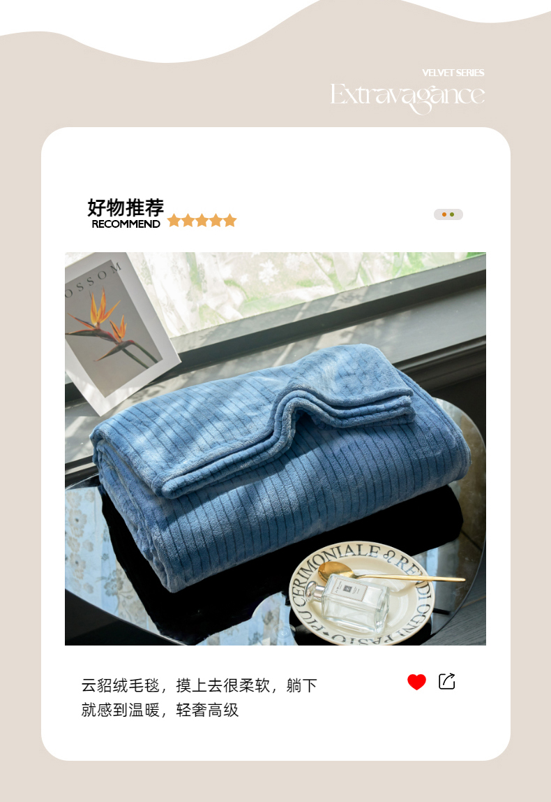 商品名称:云锦 2024新款320克全消光云貂绒毛毯 宝石蓝