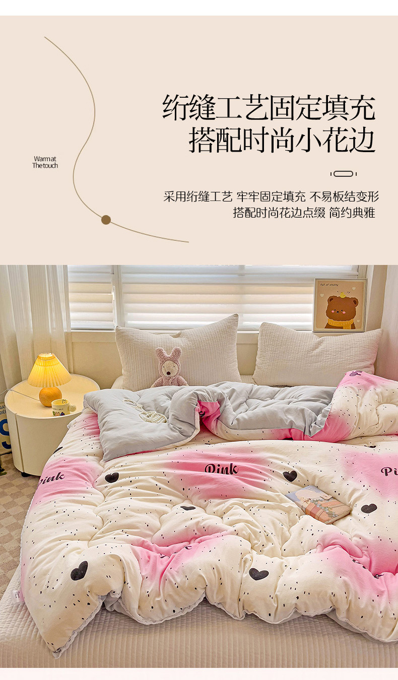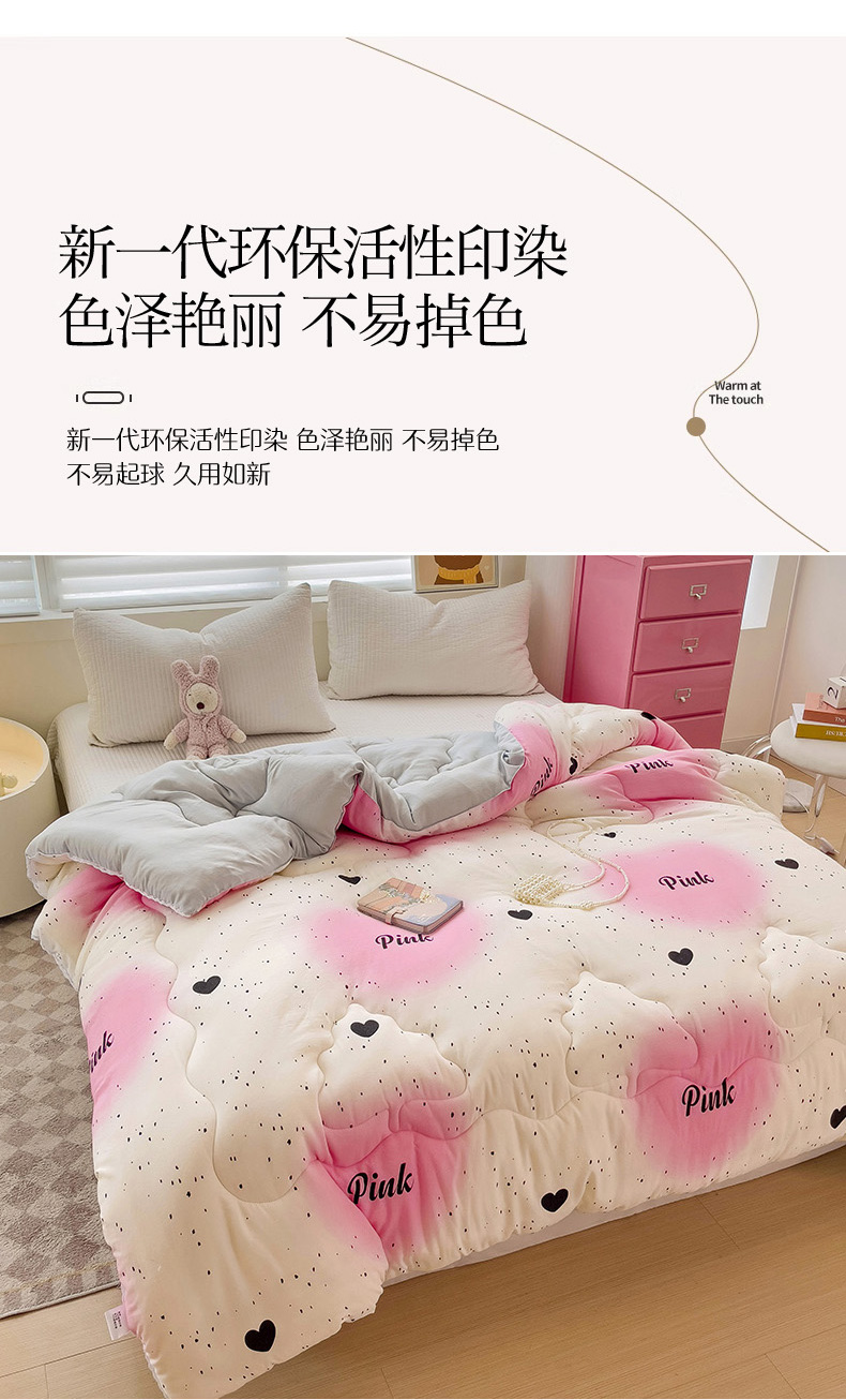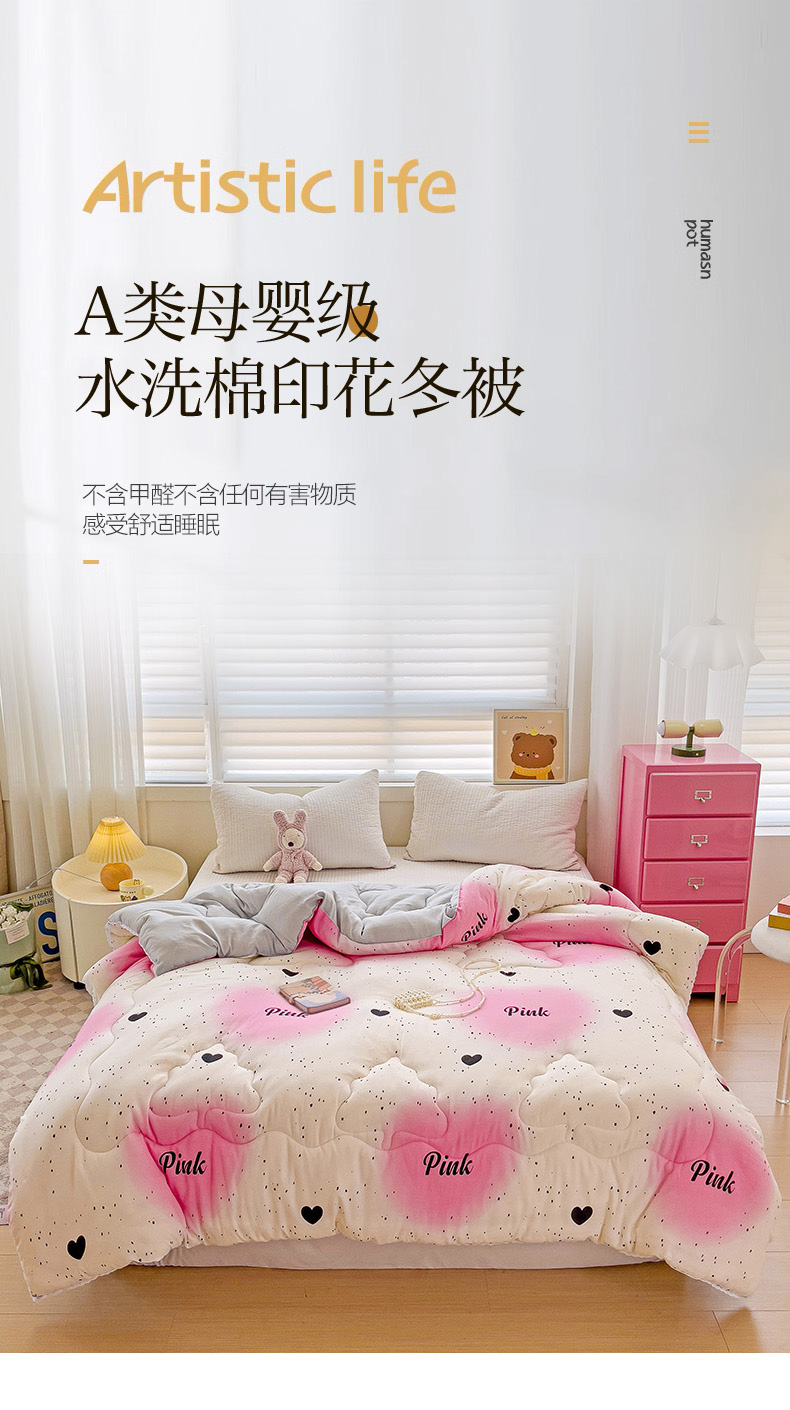 2024新款A类水洗棉印花超柔保暖冬被 粉色恋人