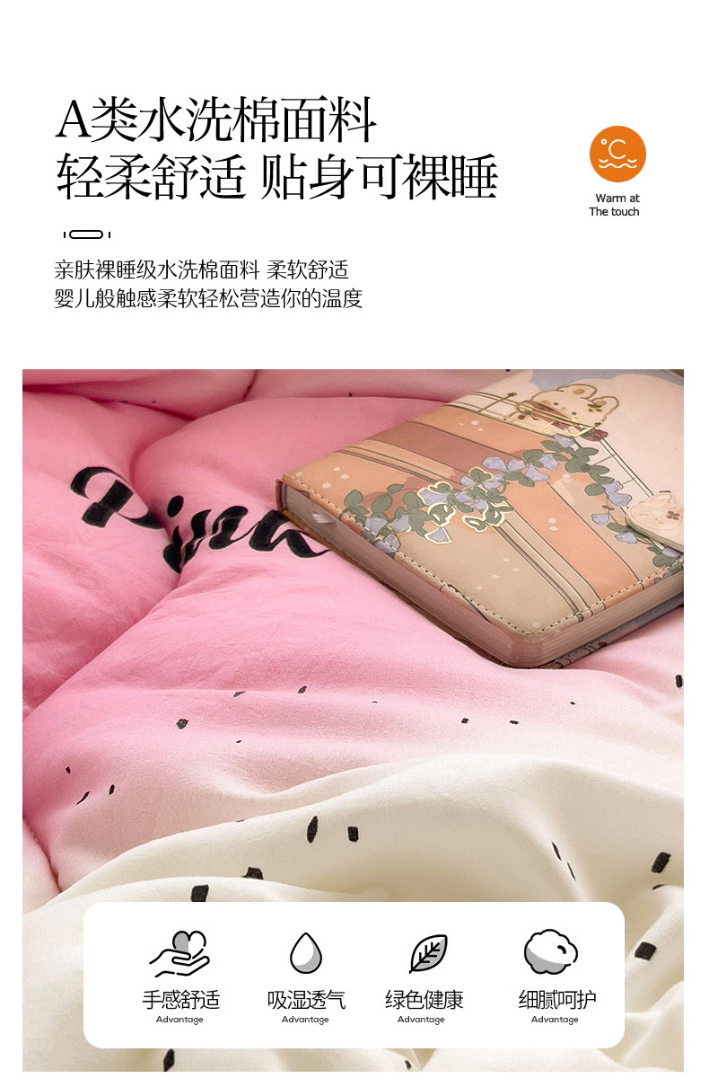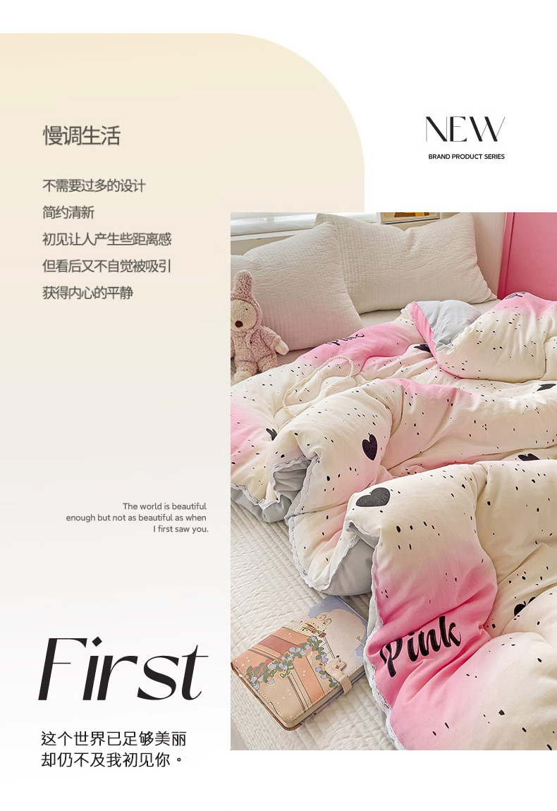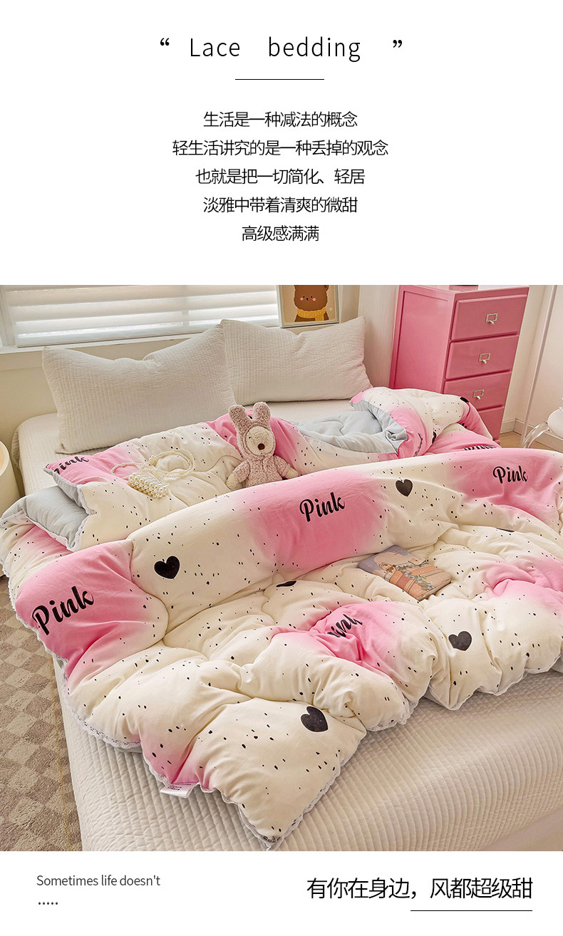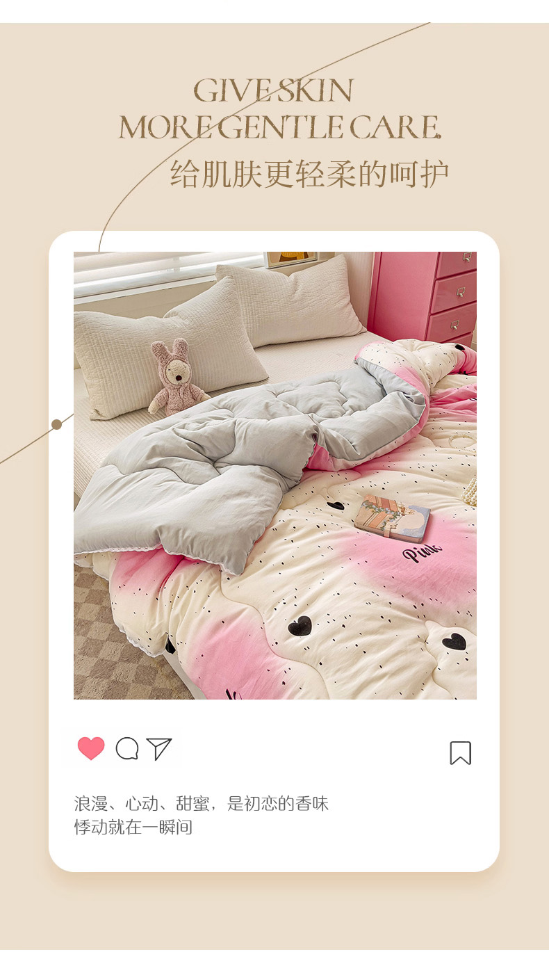2024新款A类水洗棉印花超柔保暖冬被 粉色恋人