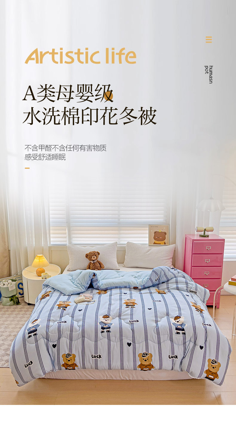 2024新款A类水洗棉印花超柔保暖冬被 幸运熊