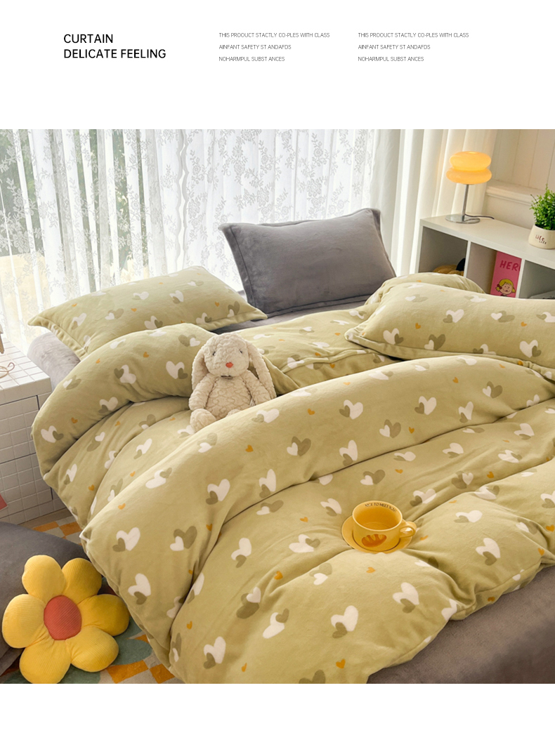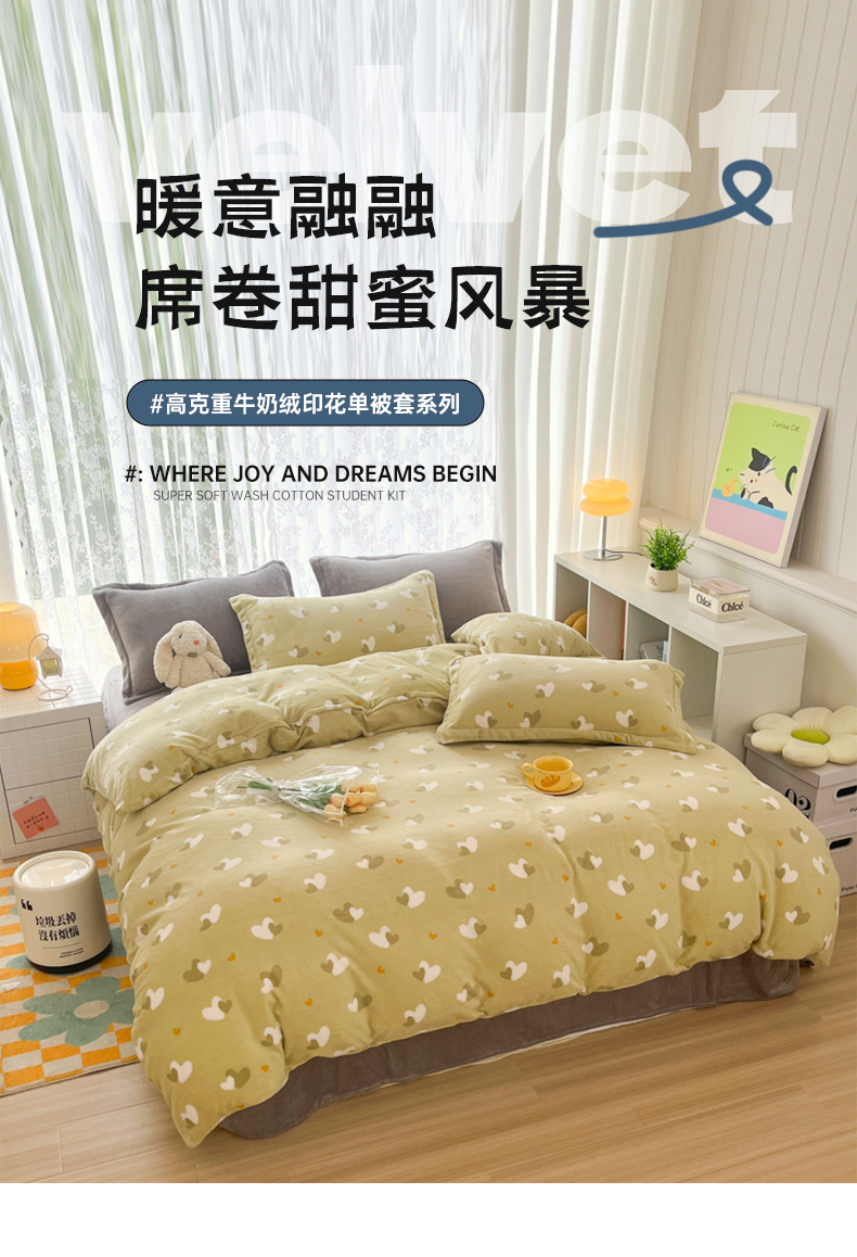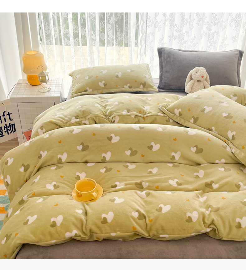 青螺家纺 2024加厚高克重保暖爆款小清新牛奶绒印花双面绒单被套 美心绿