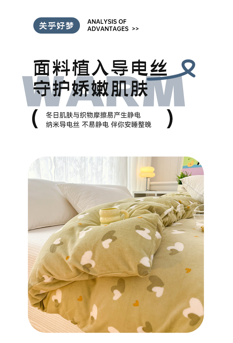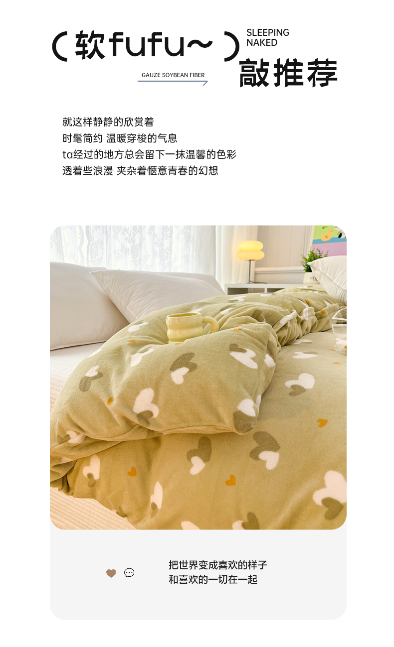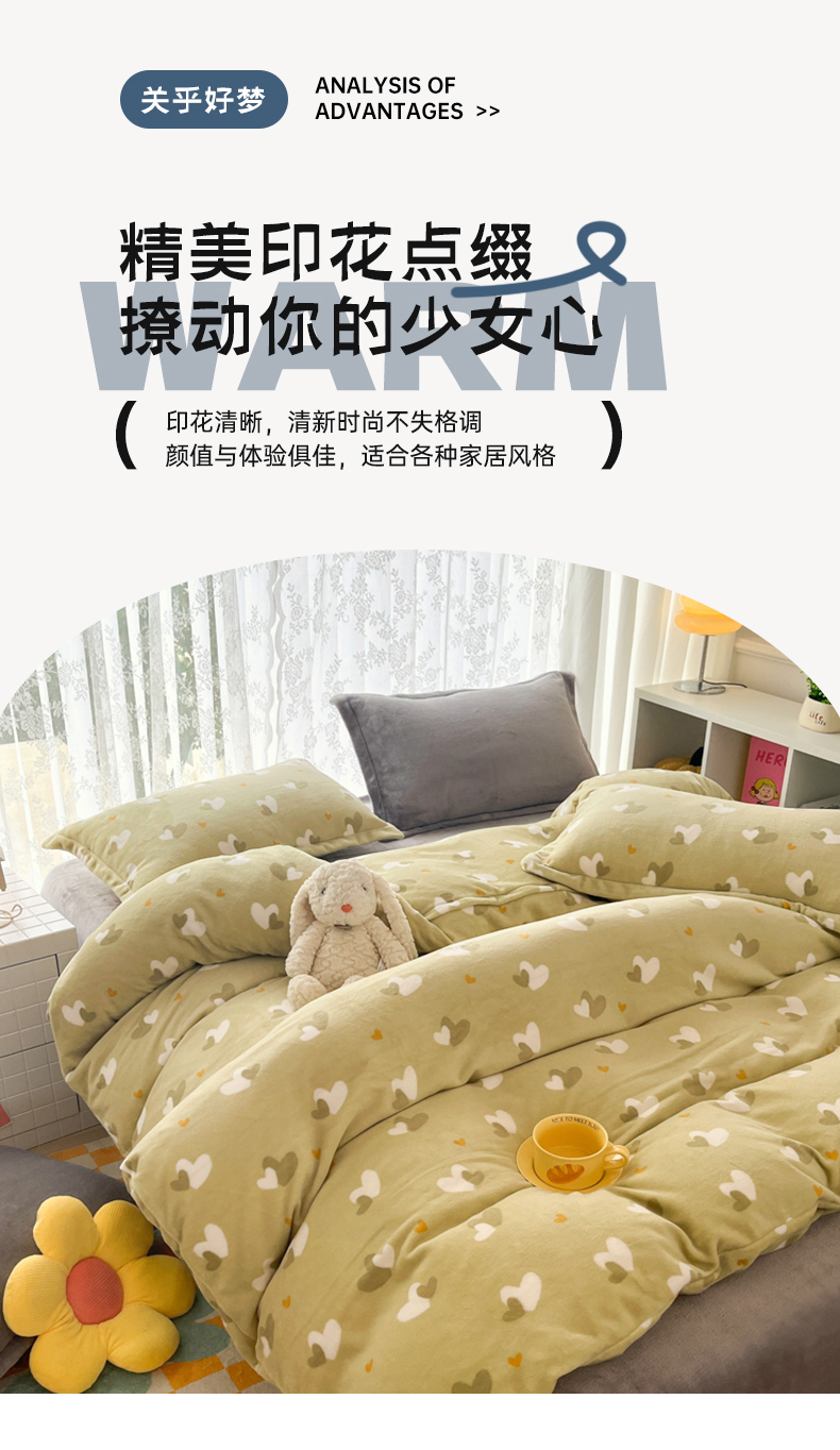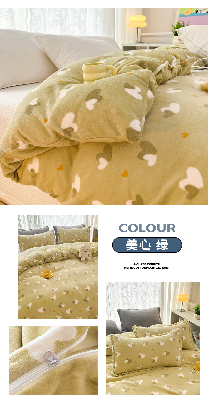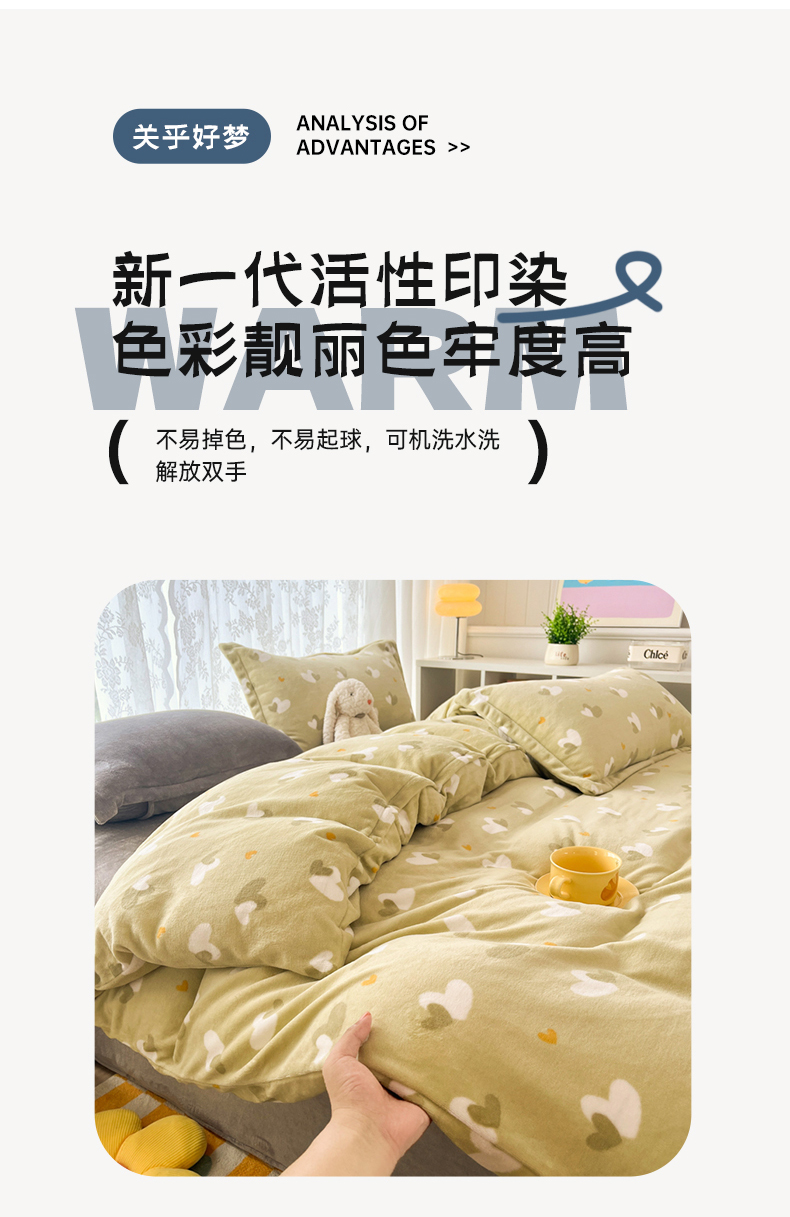 商品名称:青螺家纺 2024加厚高克重保暖爆款小清新牛奶绒印花双面绒单被套 美心绿