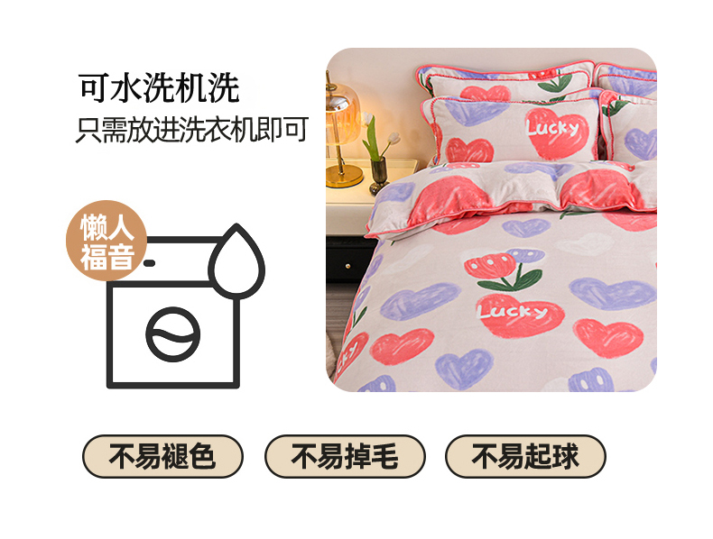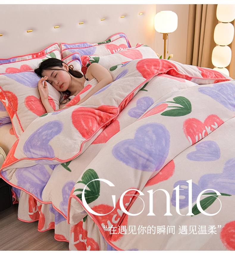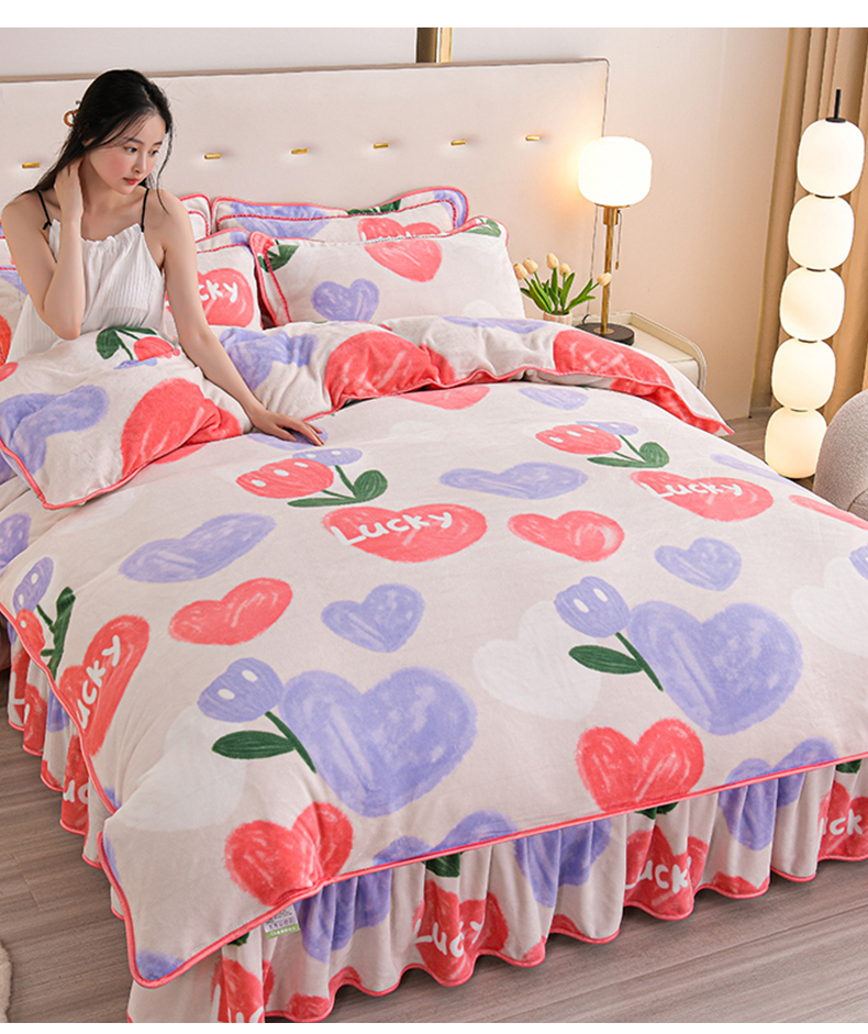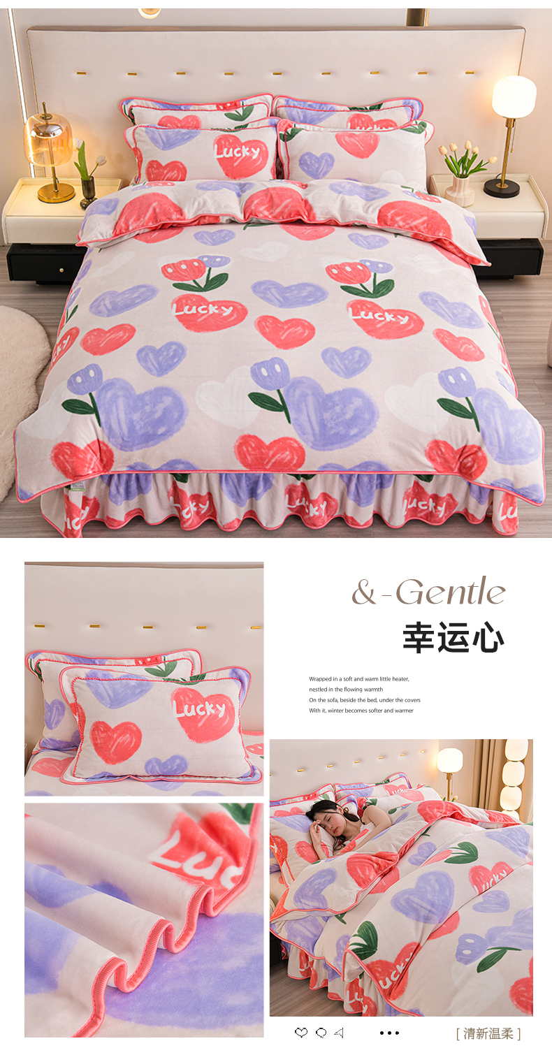 赫本家纺 2025新品8-9斤爆品牛奶绒四件套床裙款金雕绒法莱绒四套件 幸运心