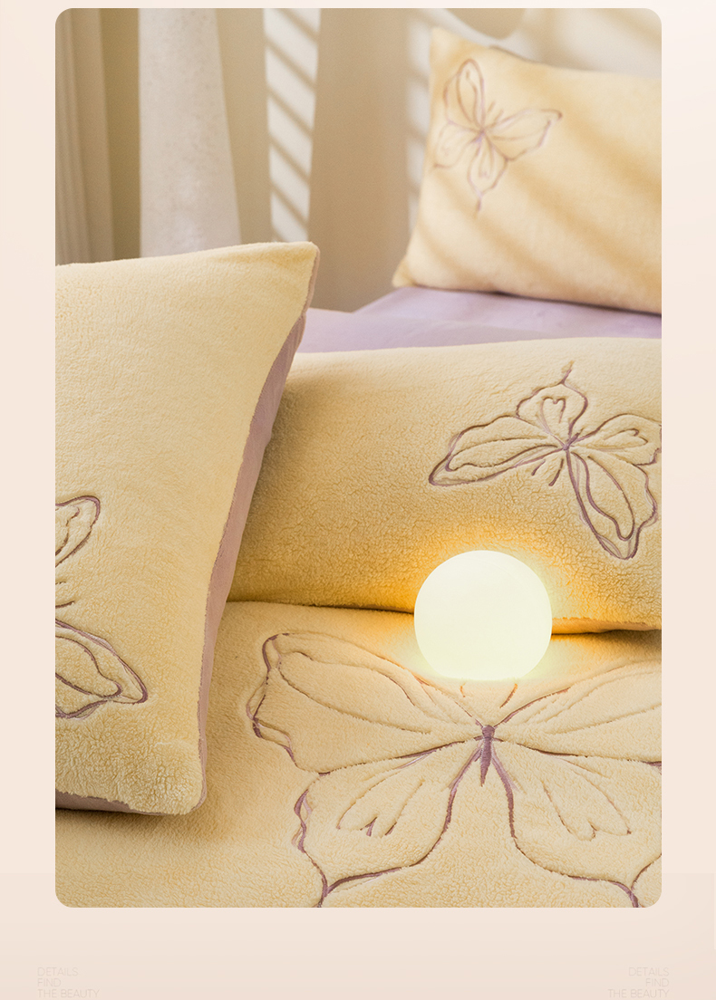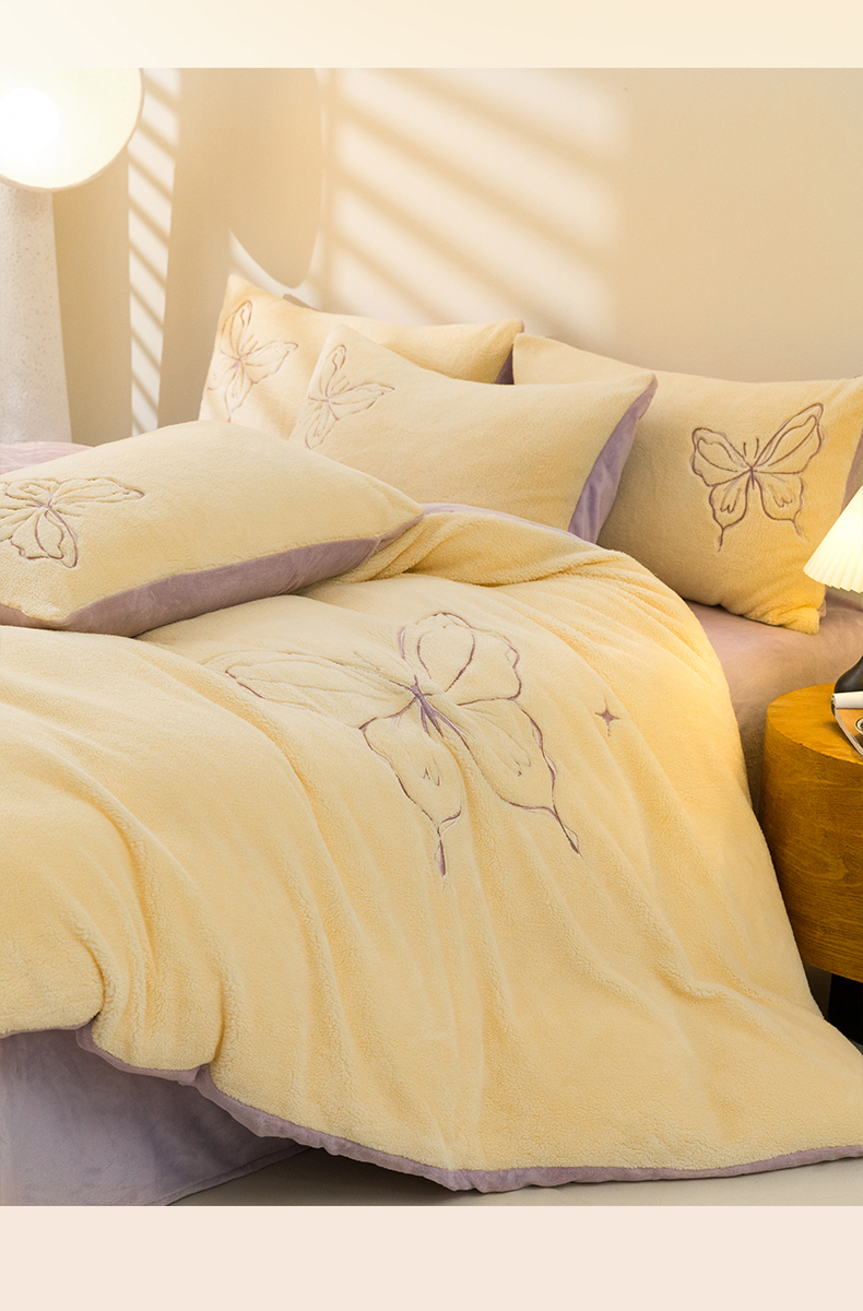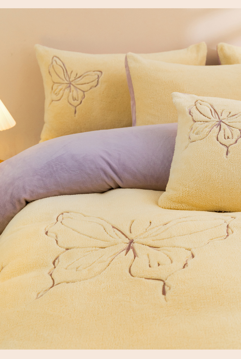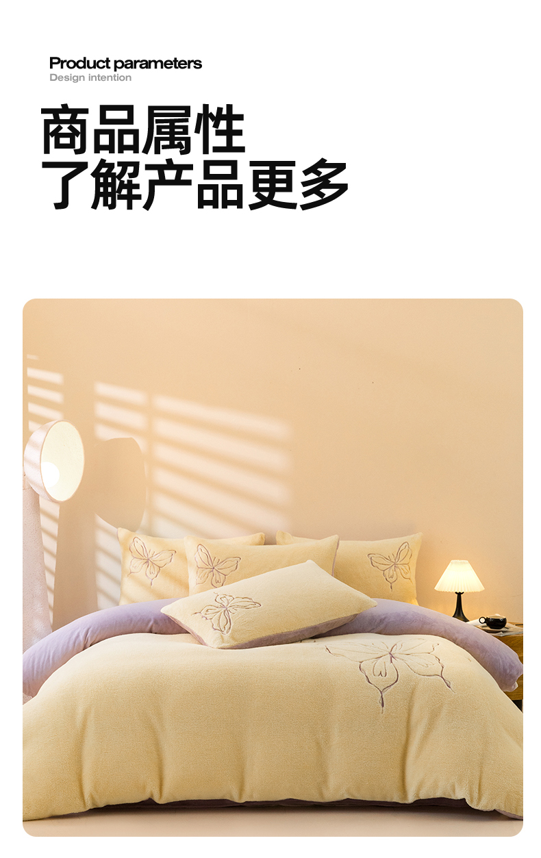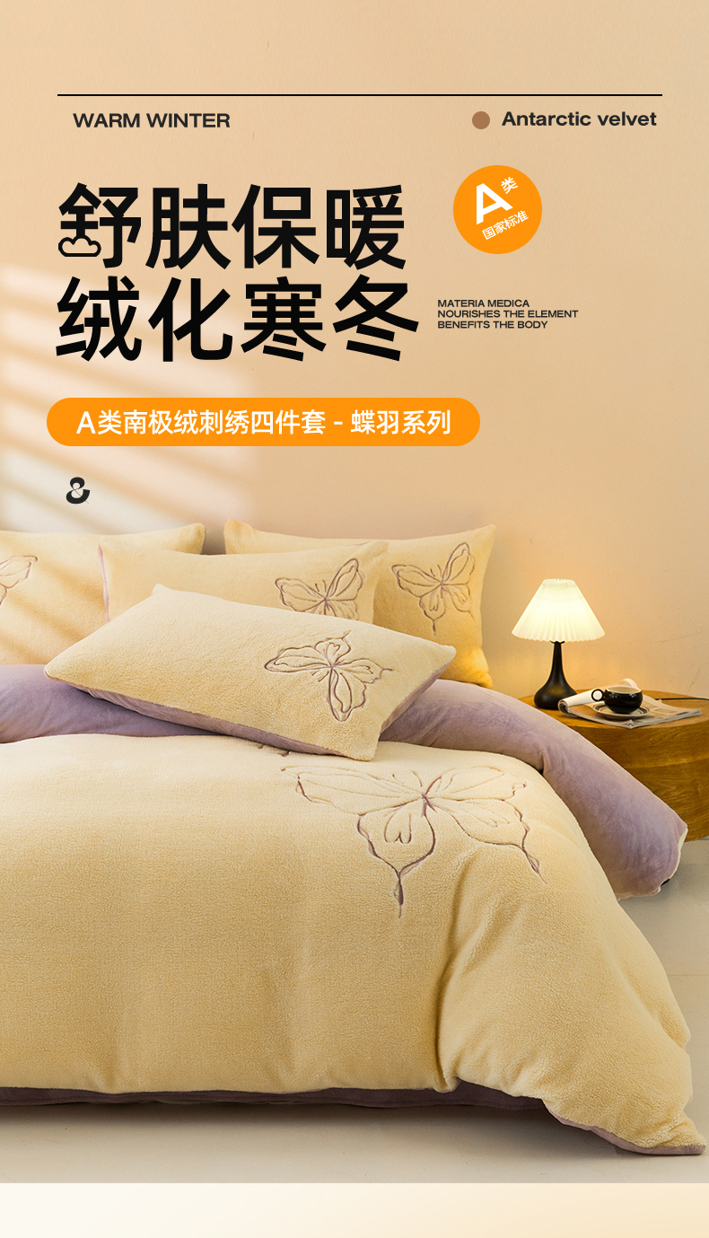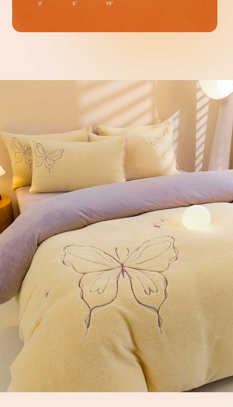 商品名称:2024新保暖-秋冬A类南极绒刺绣四件套-蝶羽系列 蝶羽-奶缇米紫