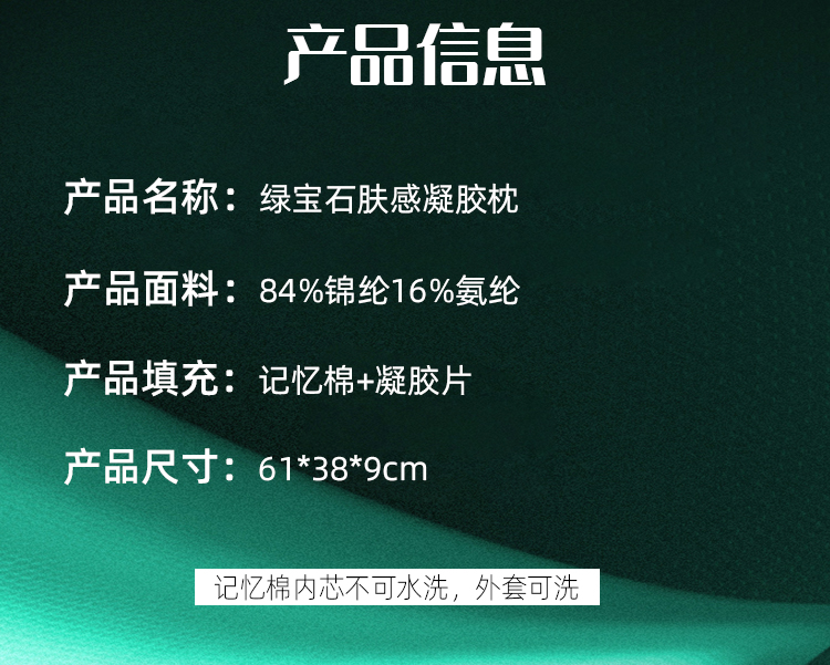 当前位置: 91家纺网 > 商品网购 > 枕头/枕芯/保健枕/颈椎枕 > 普通枕芯 > (总)帛茗轩 2024新款绿宝石凝胶枕欢迎批量下单,价格有优惠