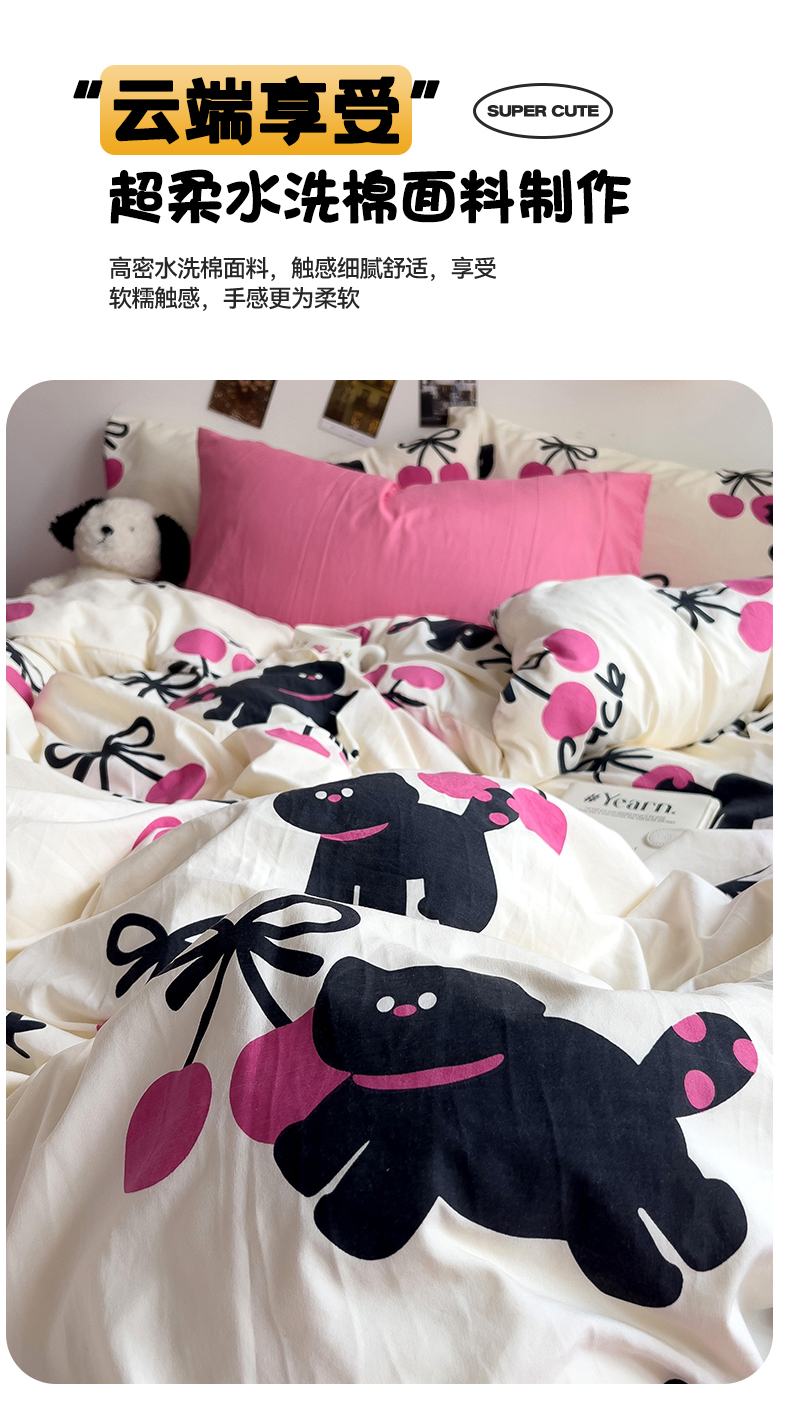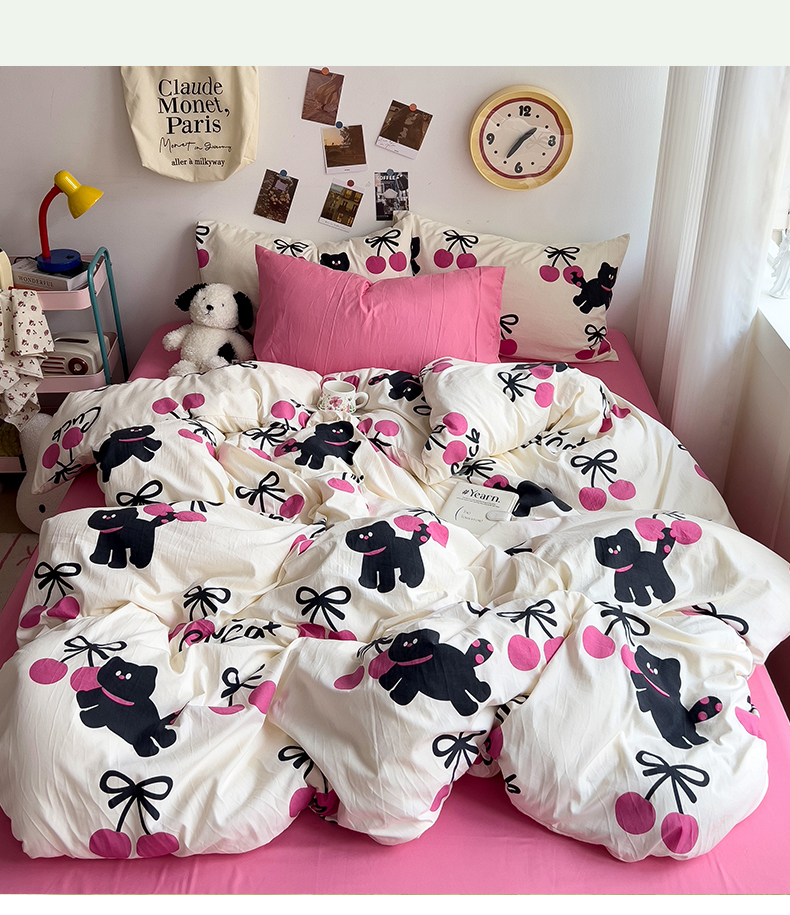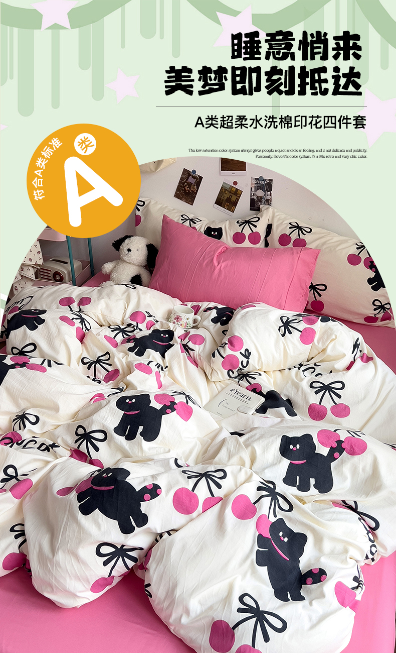 当前位置: 91家纺网 > 商品网购 > 床品套件 > 四件套 > 水洗棉四件套 > 星巴k家纺 2024新款A类超柔水洗棉印花四件套 甜酷小猫