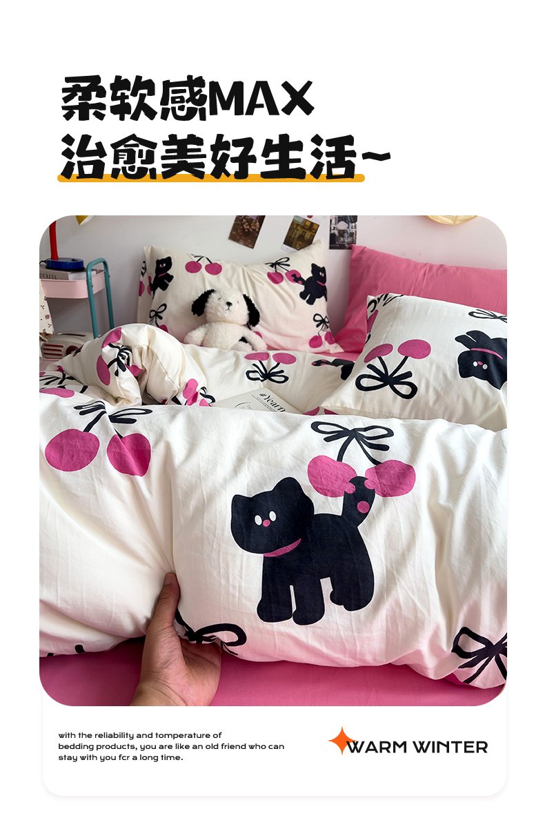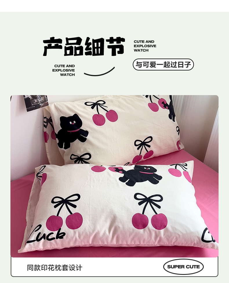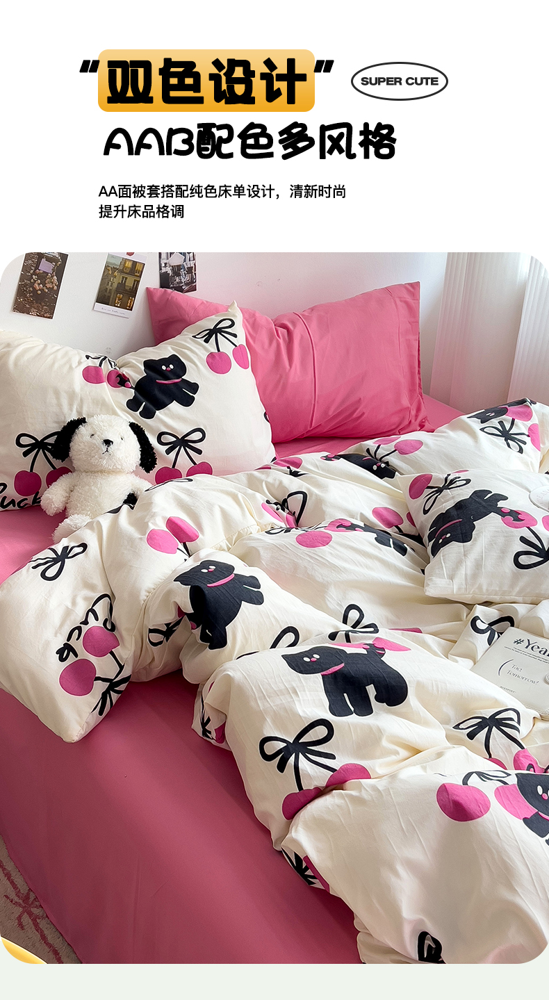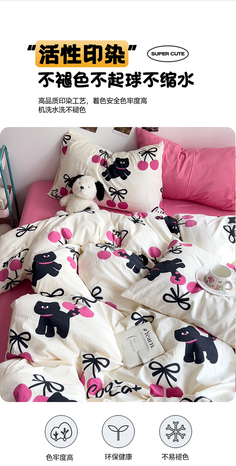 当前位置: 91家纺网 > 商品网购 > 床品套件 > 四件套 > 水洗棉四件套 > 星巴k家纺 2024新款A类超柔水洗棉印花四件套 甜酷小猫