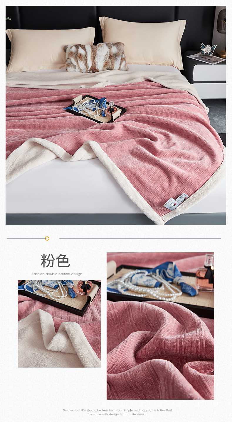 (总)凯轩毛毯网销专供 2026新款仿刺绣双层加厚压花云毯,豆沙红,绛紫色,孔雀绿,奶油咖,珊瑚粉,深灰色