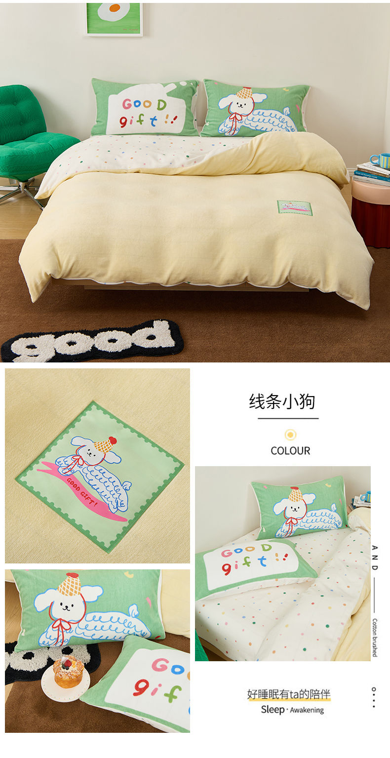 呗旺鹿 2024新款加厚保暖设计师款高克重牛奶绒贴标款四件套【原创】 贴标款-线条小狗