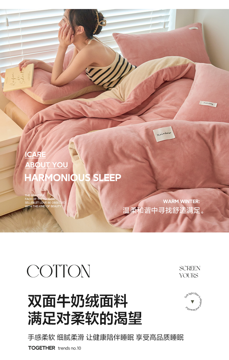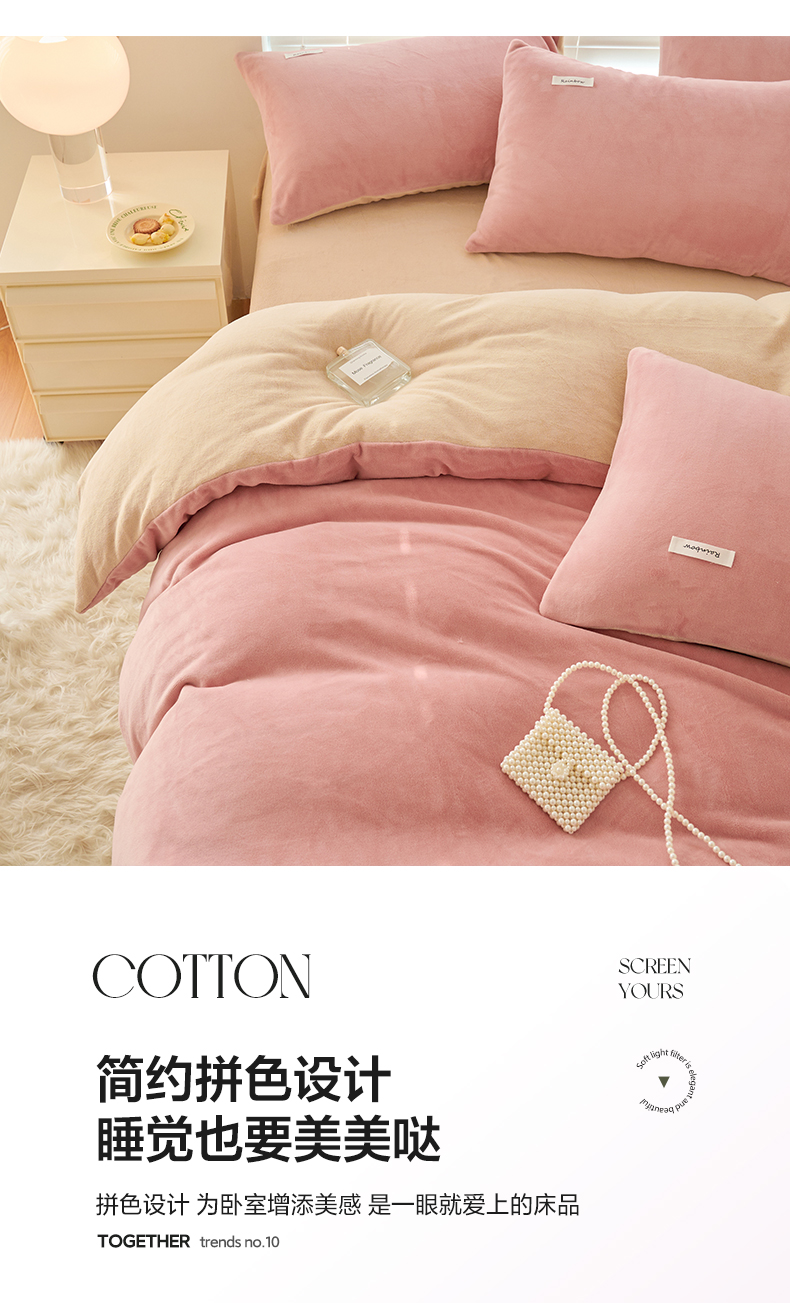 当前位置: 91家纺网 > 商品网购 > 床品套件 > 四件套 > 牛奶绒四件套 > 晨曦 2024秋冬新品ins简约风牛奶绒双拼四件套 烂漫豆沙