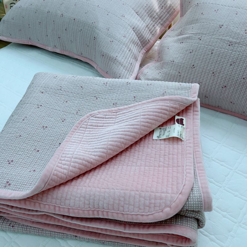 商品名称:2024新款棉加绒双面两用四季款床盖三件套 粉妆