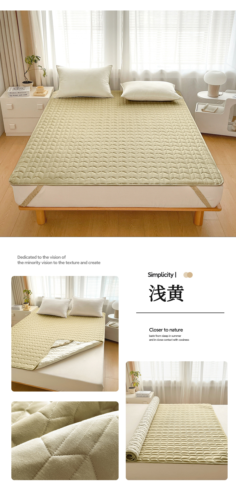 商品名称:2024新款40支全棉夹棉床垫 浅黄