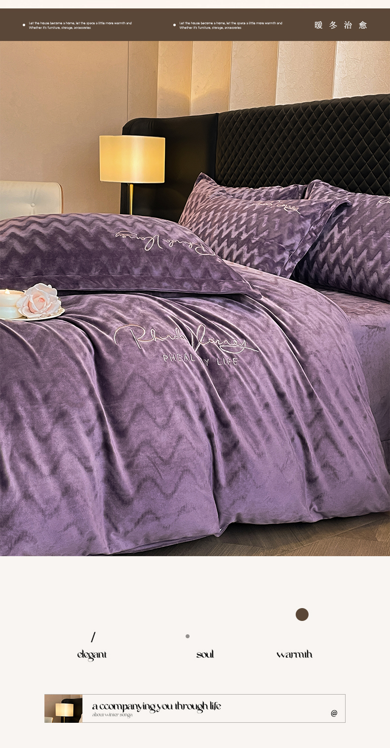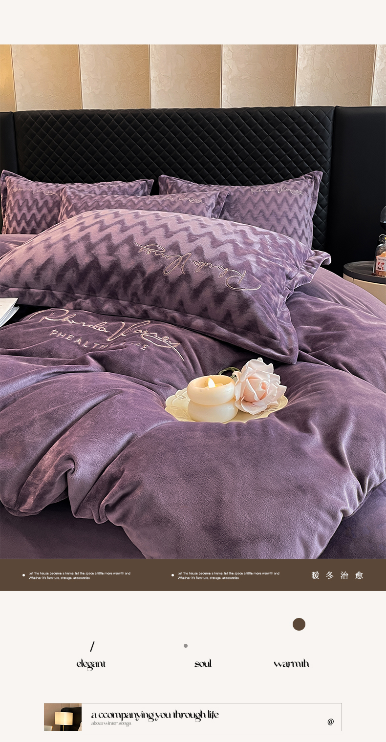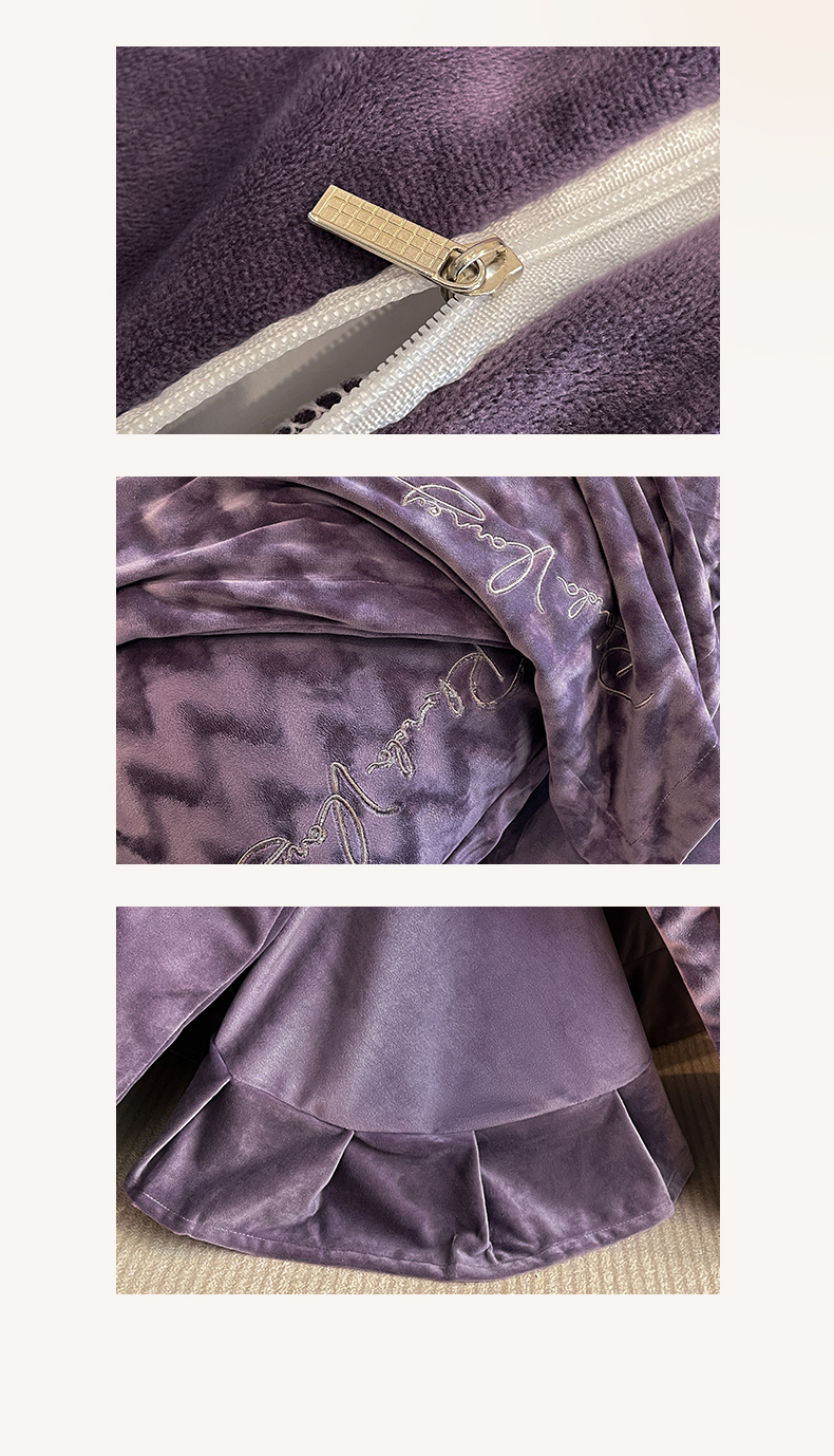2024新款高克重宝宝绒简奢风刺绣四件套系列-遇见 遇见-莫奈紫