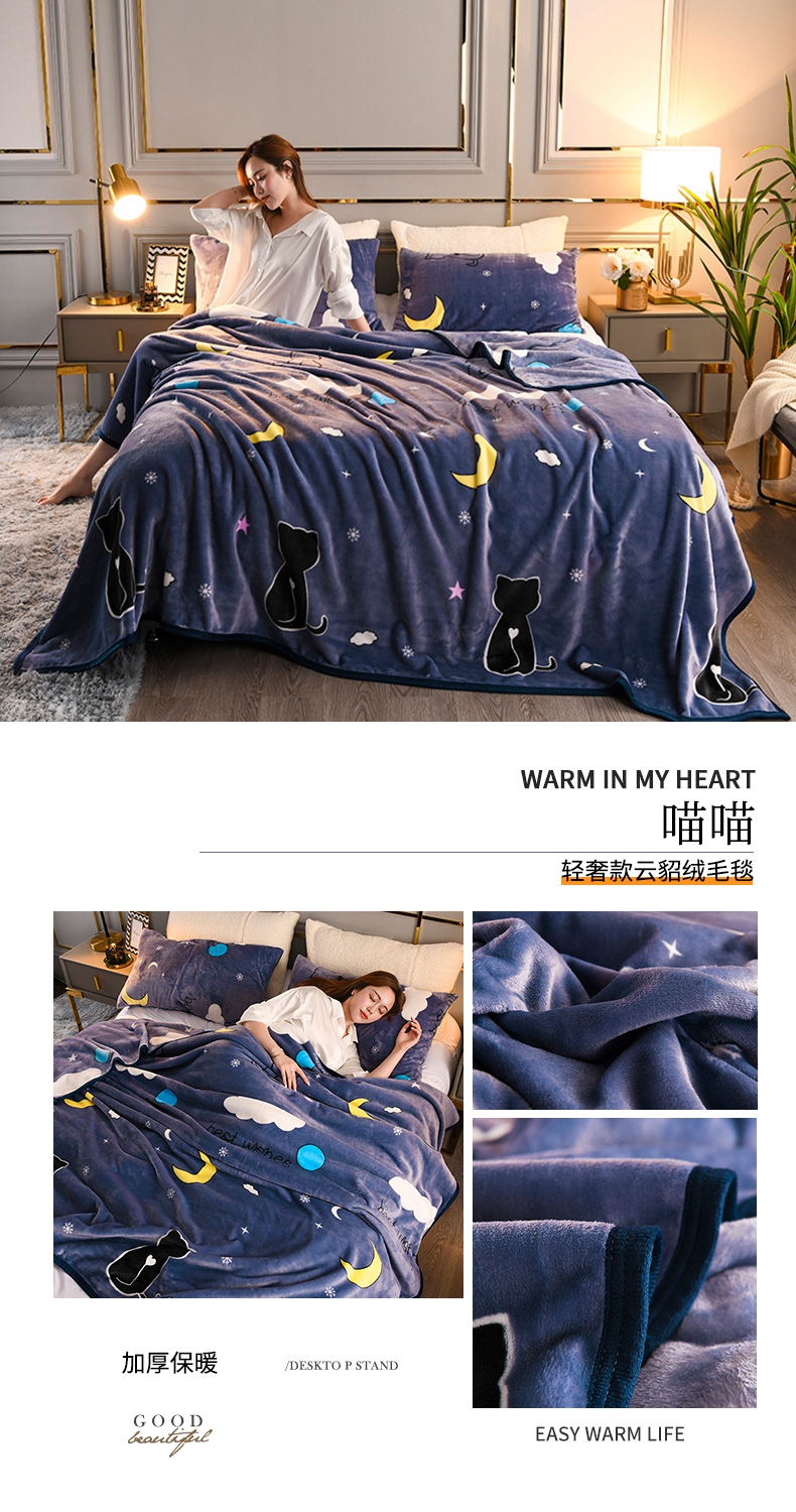 圣楚 2024新款300g加厚保暖云貂绒双面毯子办公室午睡毛毯直播 喵喵