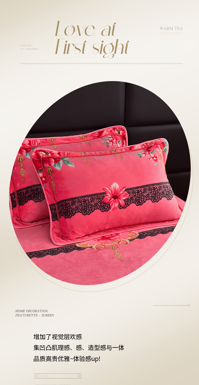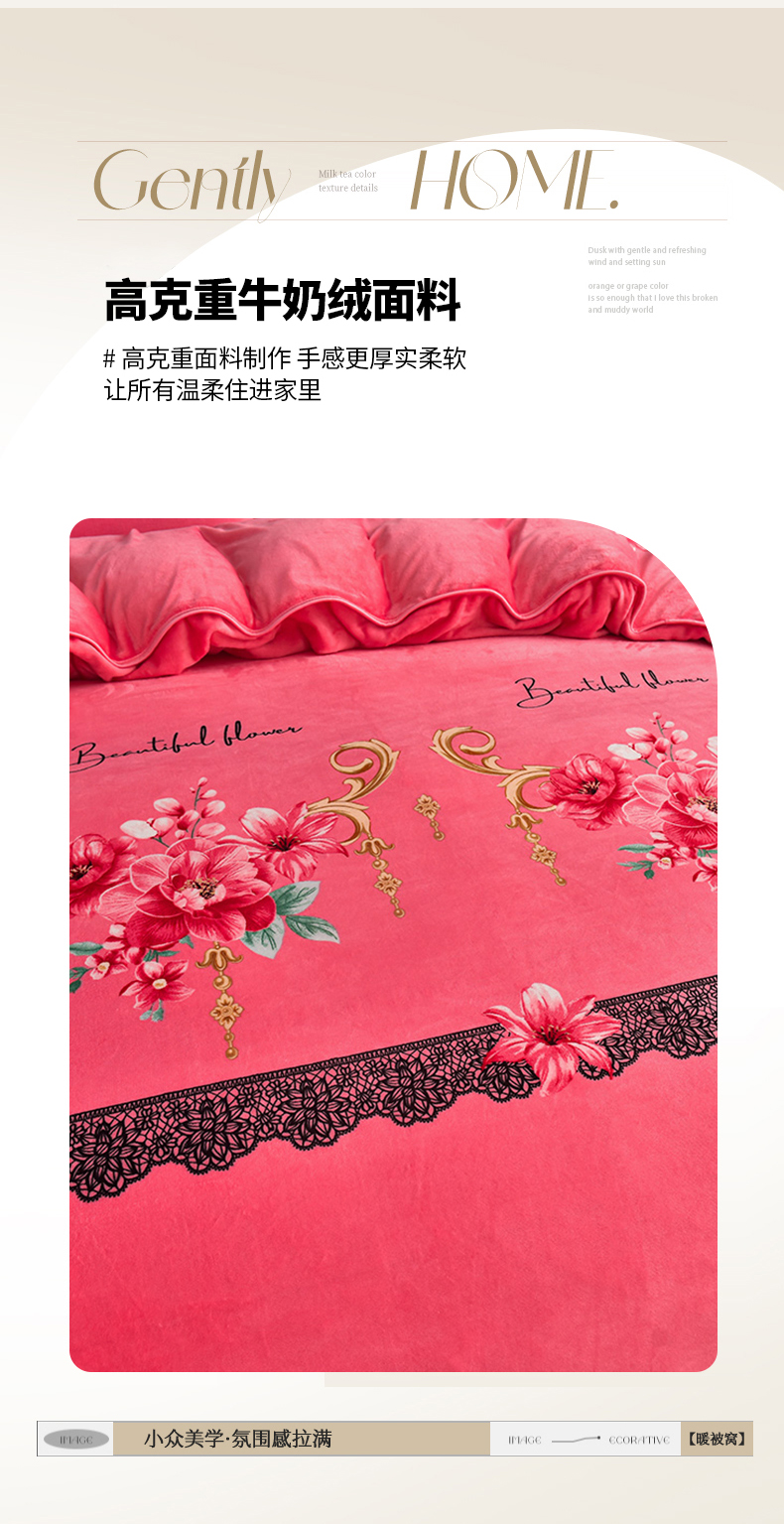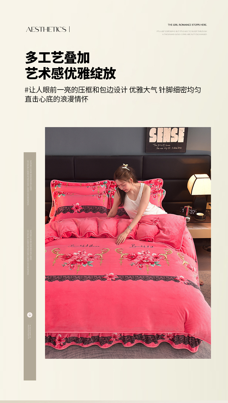 商品名称:2025新款牛奶绒印花床裙四件套系列-四件套 粉色佳人