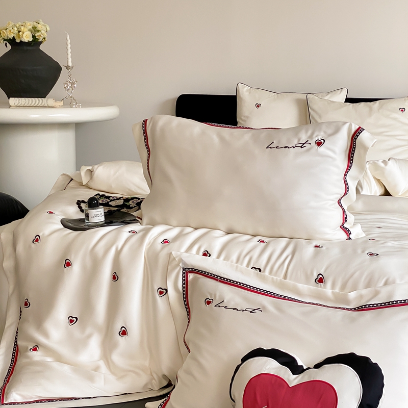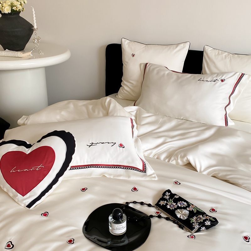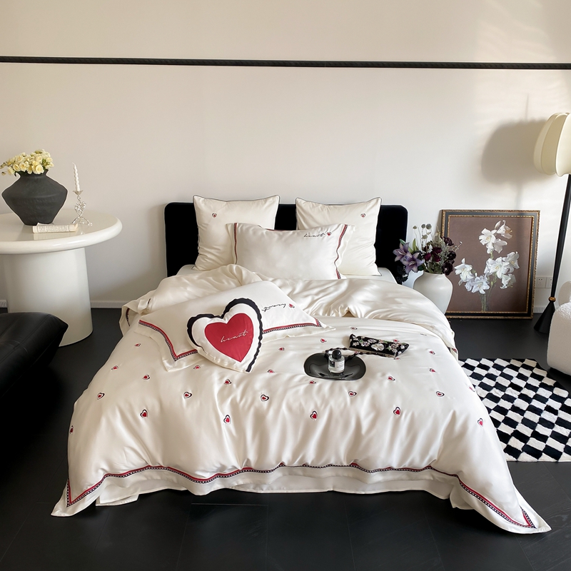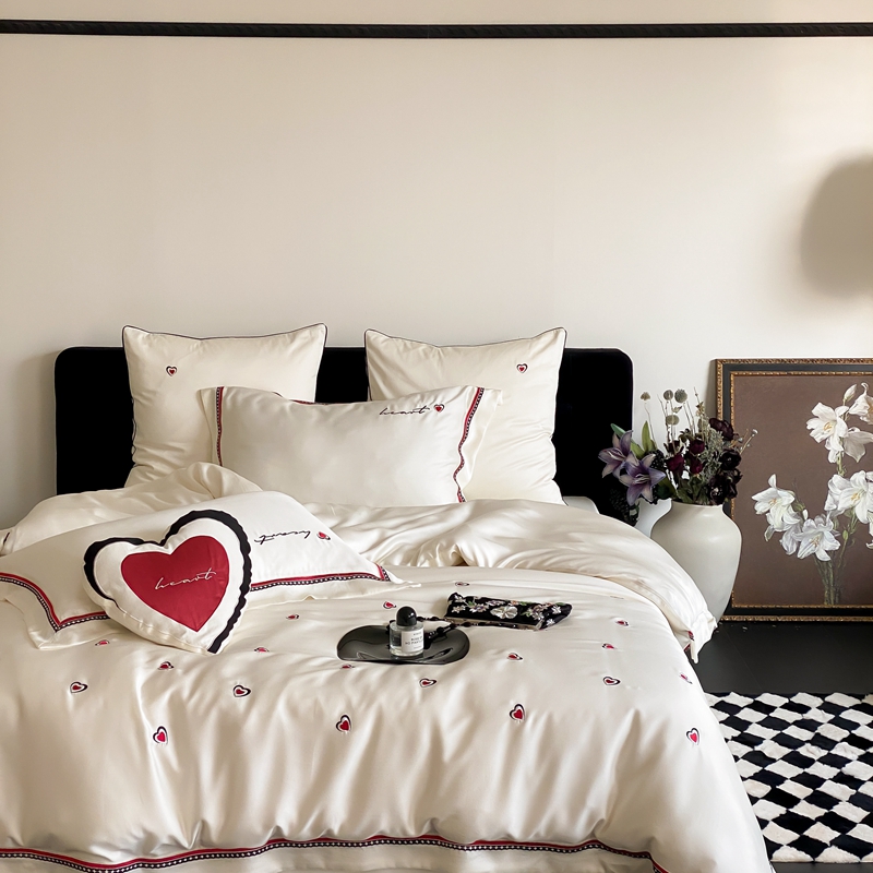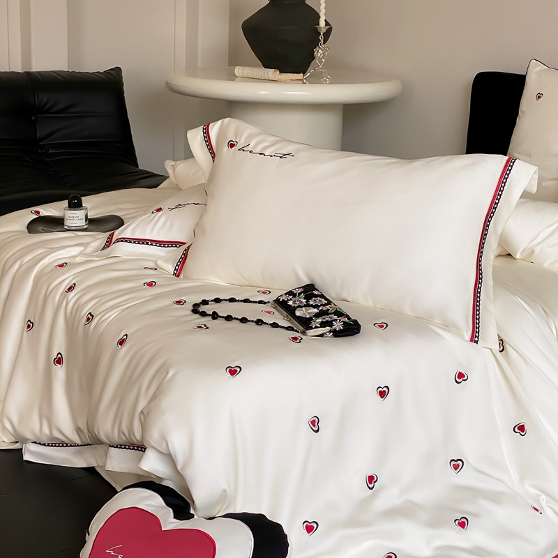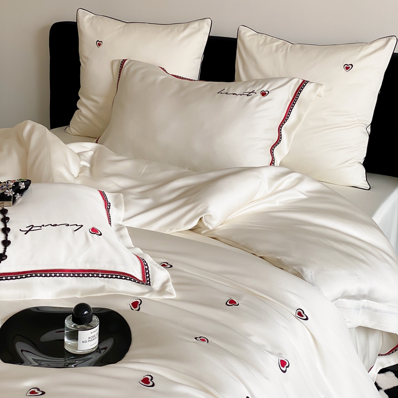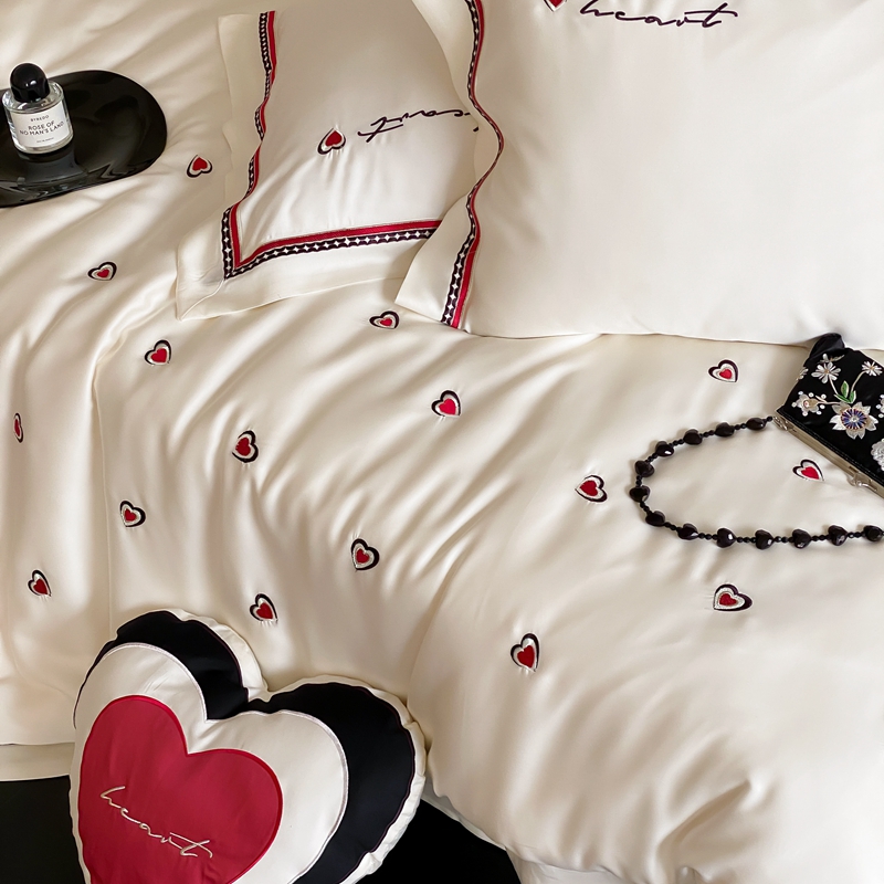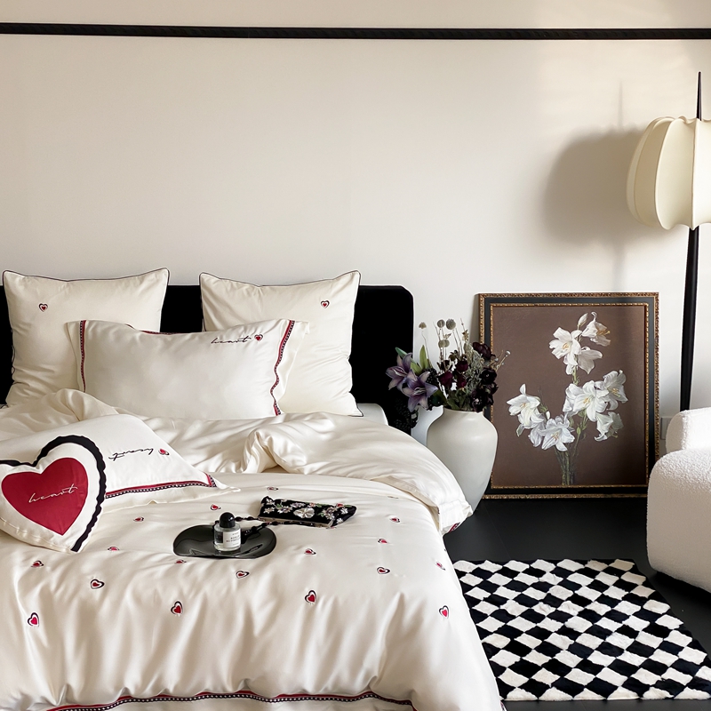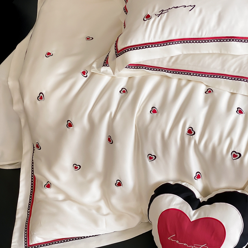 馨蕊 2024新款100S高奢简约长绒棉四件套-棉小爱心 棉小爱心-月光白