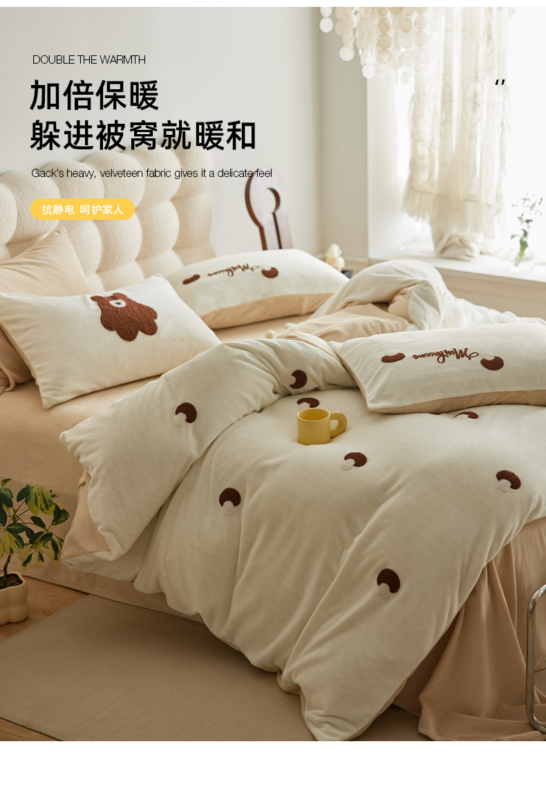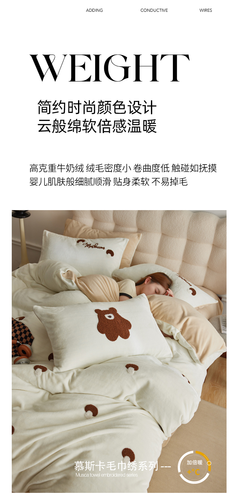 千朵森 2024新款毛巾绣牛奶绒四件套-慕斯卡 风格一 慕斯卡-槟蓝灰
