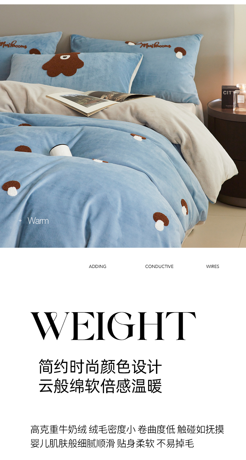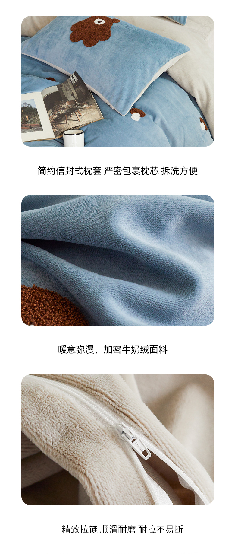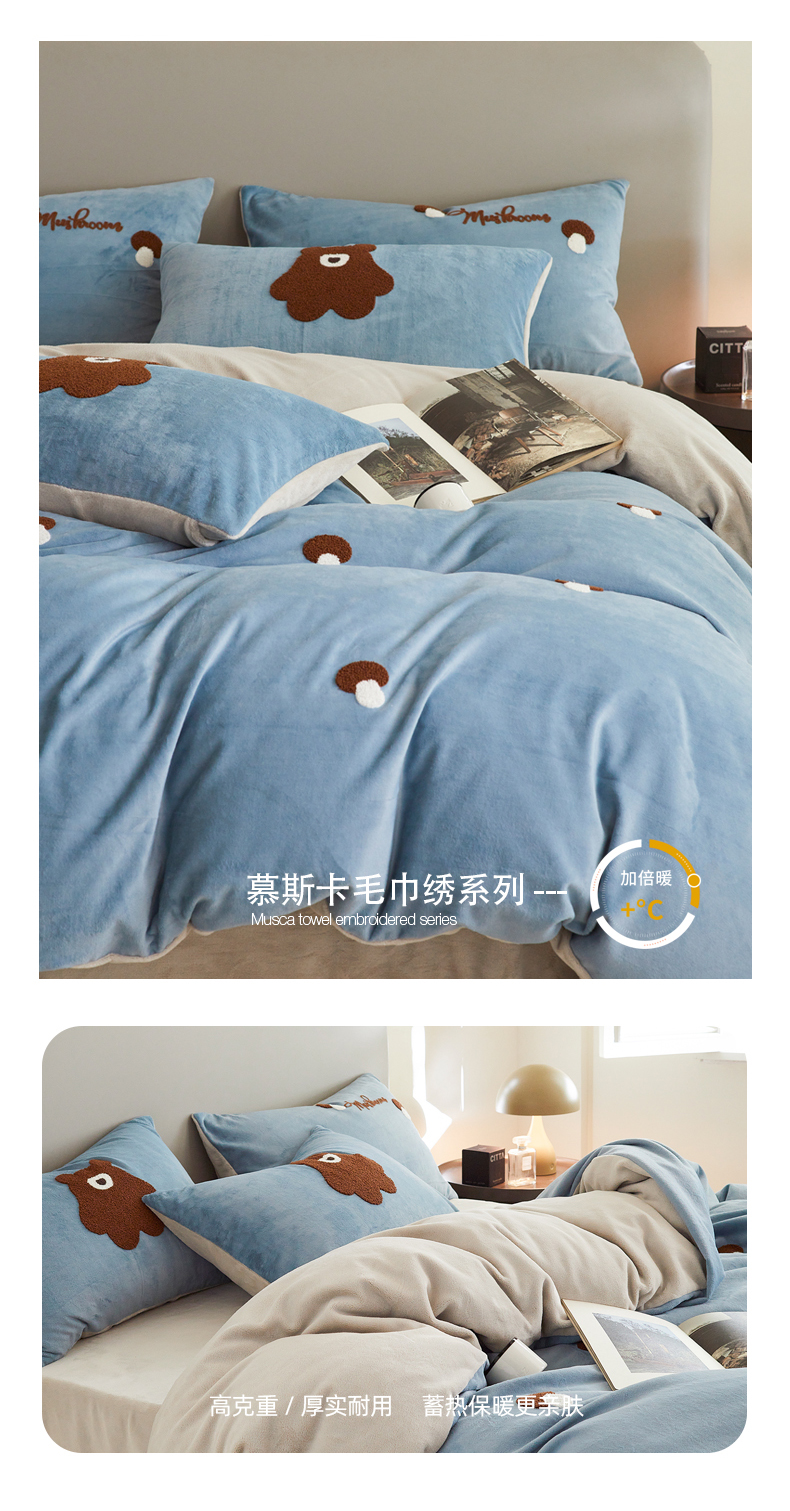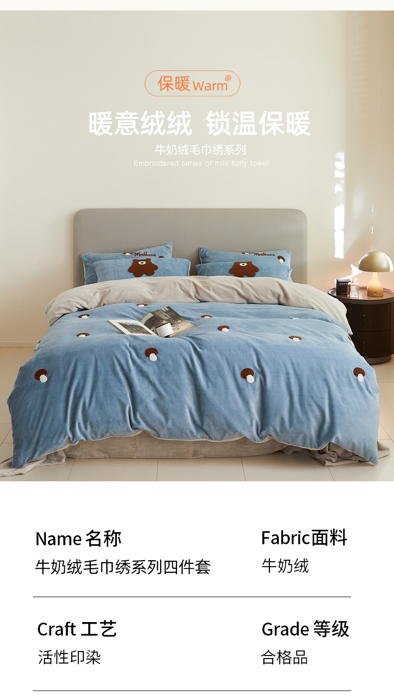 千朵森 2024新款毛巾绣牛奶绒四件套-慕斯卡 风格二 慕斯卡-槟蓝灰
