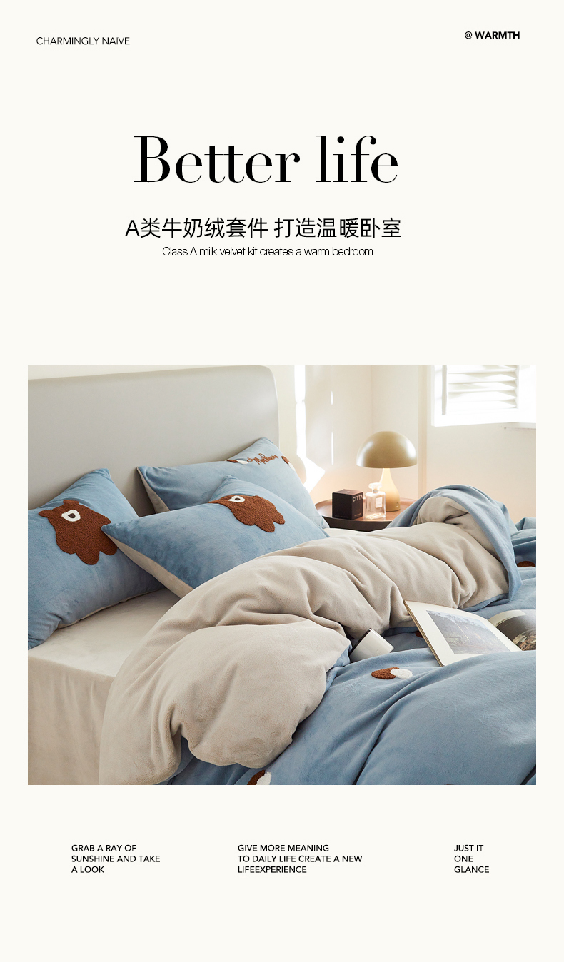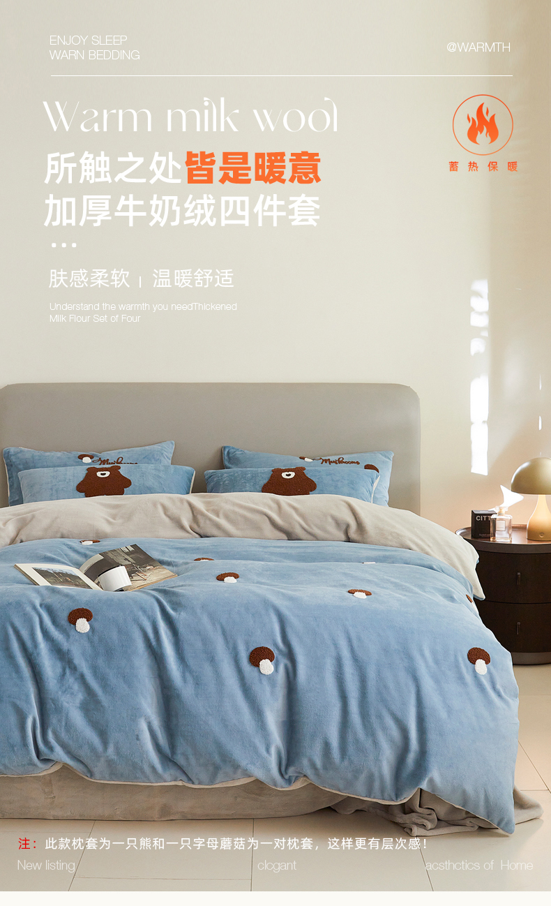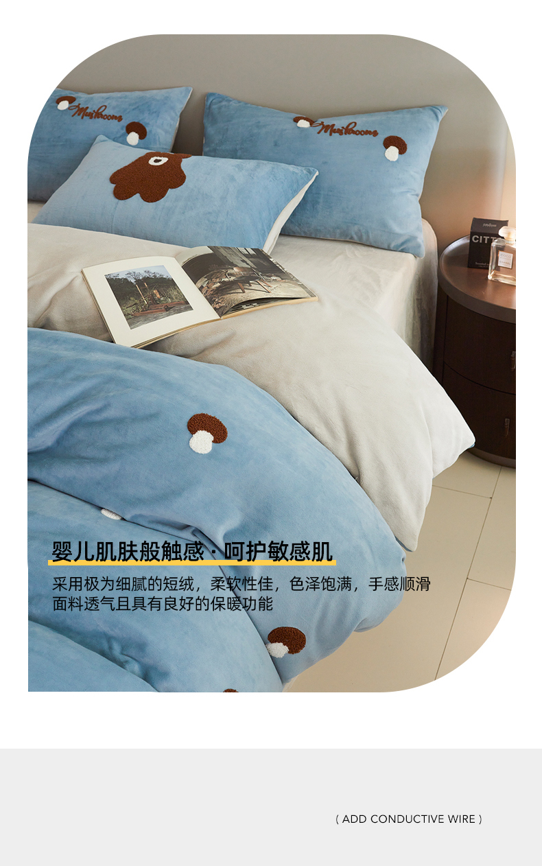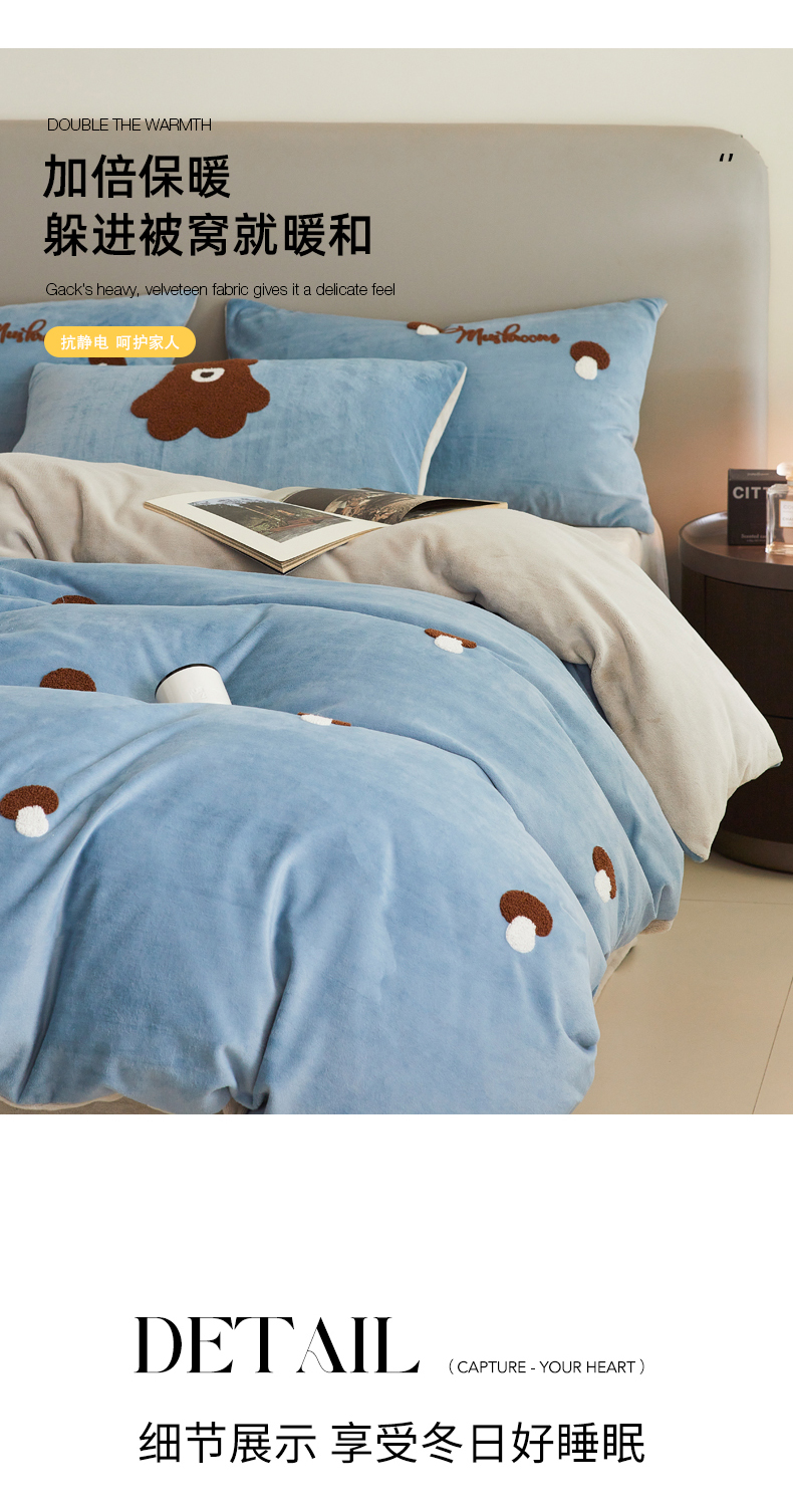 千朵森 2024新款毛巾绣牛奶绒四件套-慕斯卡 风格二 慕斯卡-槟蓝灰