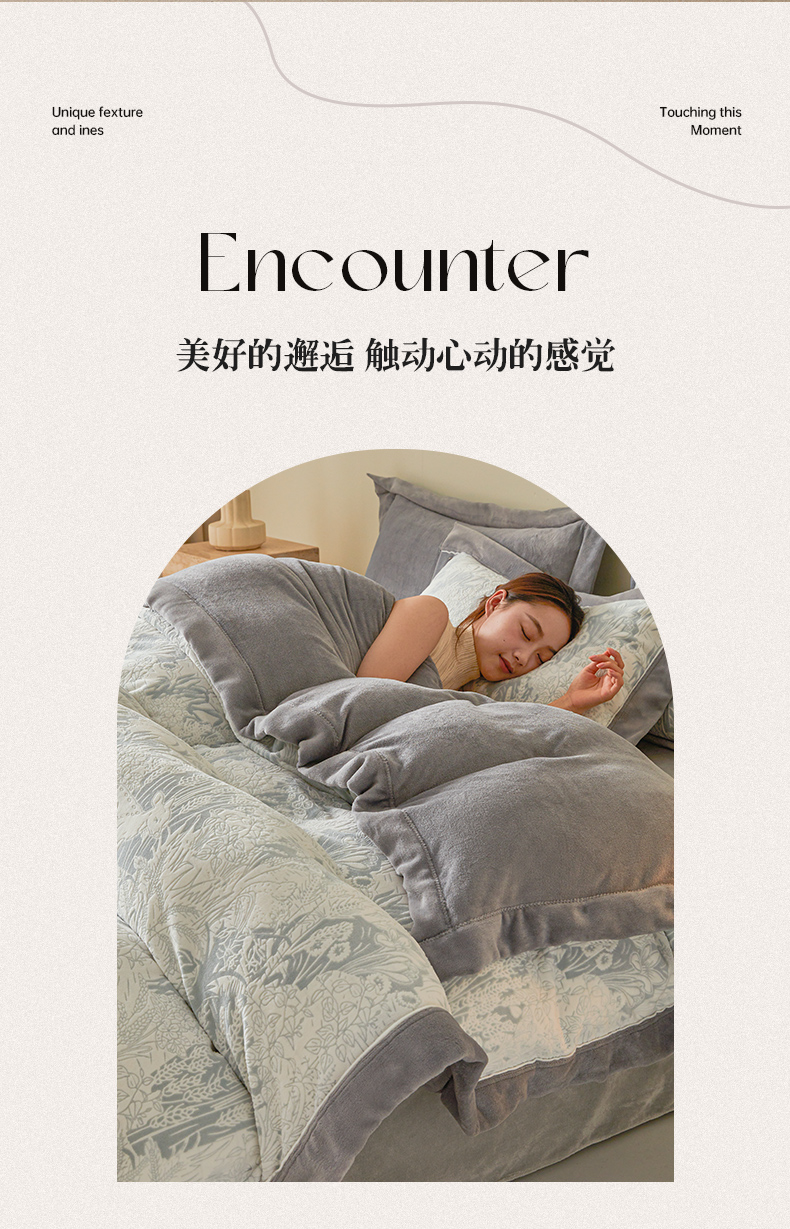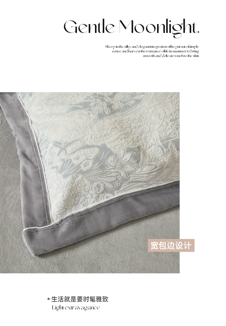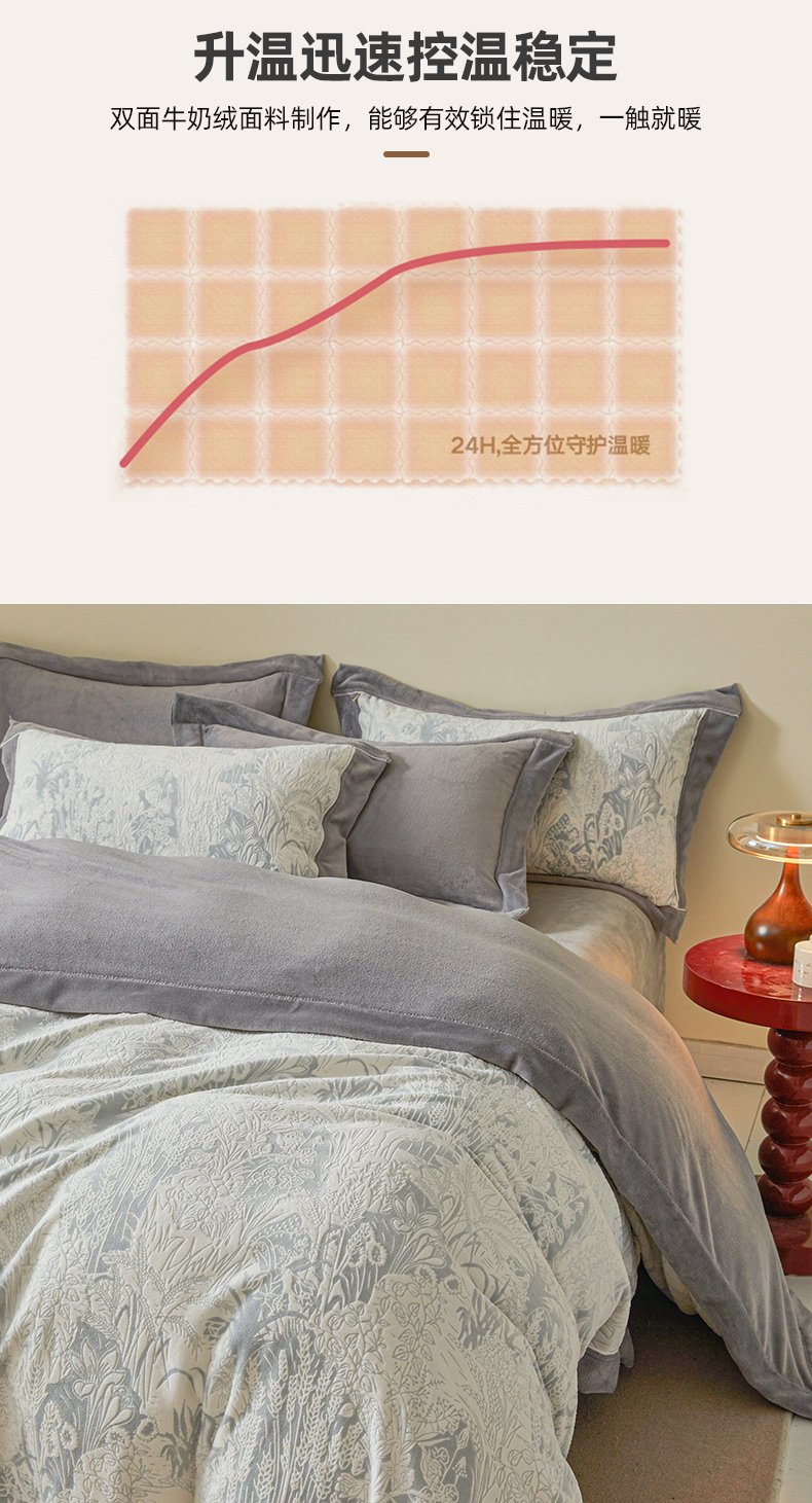 商品名称:全季家居 2024新款A类高克重5D立体浮雕宽边牛奶绒加厚保暖被套单件 海棠花开-灰