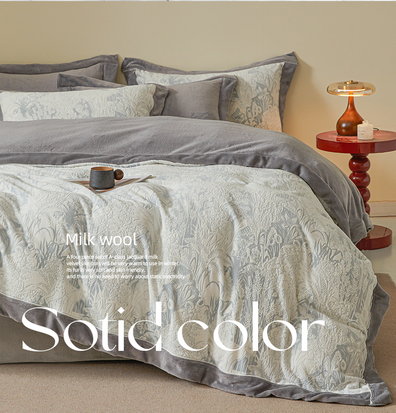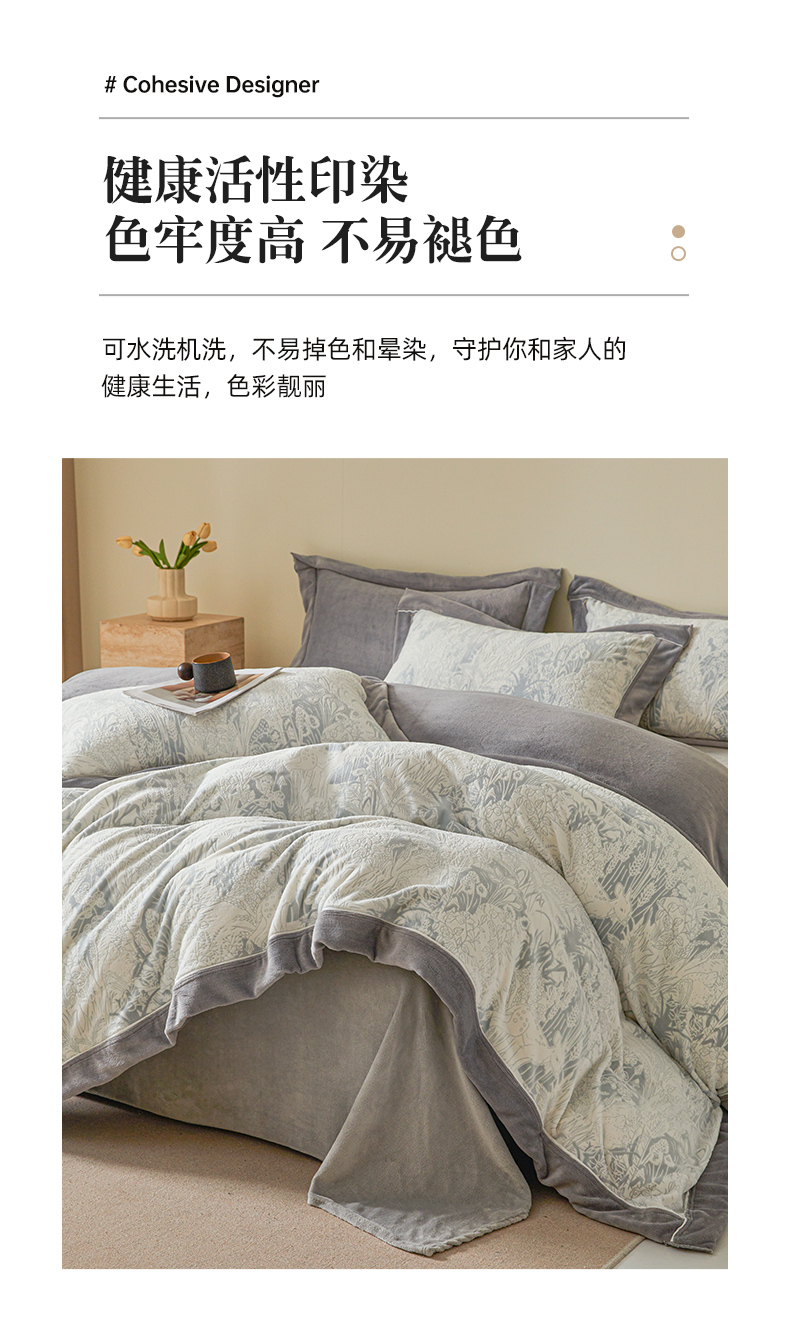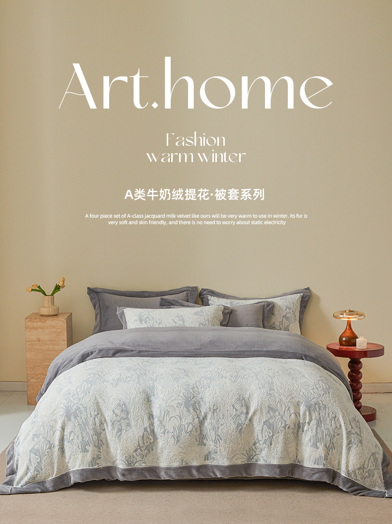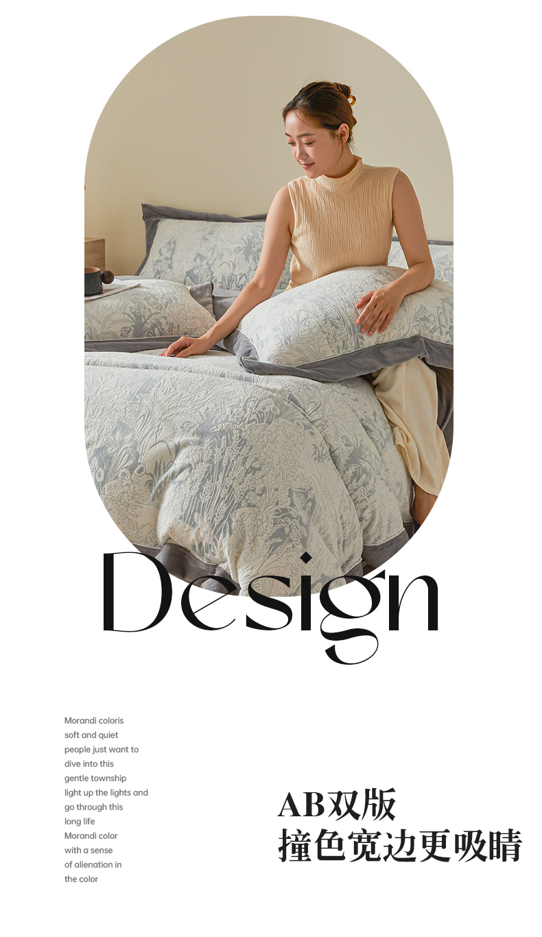 商品名称:全季家居 2024新款A类高克重5D立体浮雕宽边牛奶绒加厚保暖被套单件 海棠花开-灰